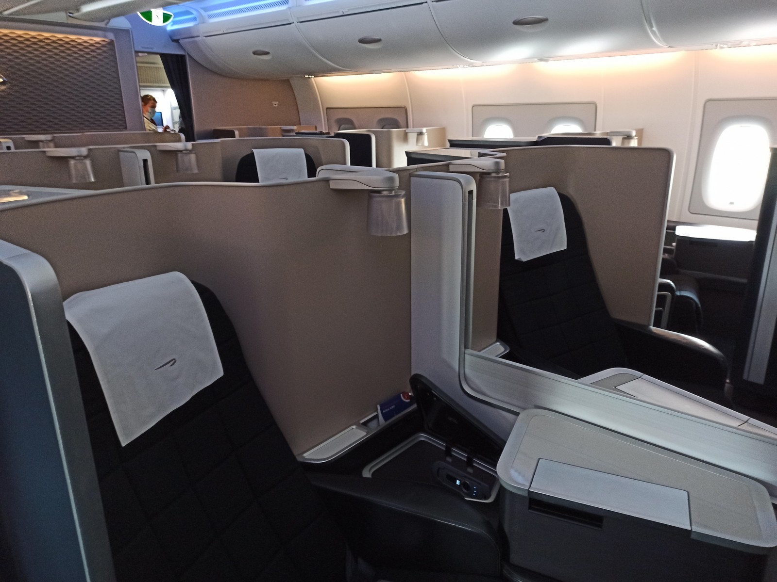 So empfinden wir die Business Class im Airbus A380 als nicht mehr zeitgemäß. Im Vergleich zur alten British Airways Business Class, sind die neuen Club Suites ein deutlicher Fortschritt. Anstatt einer 2-4-2 bzw. 2-3-2 Konfiguration Konfiguration erwartet die Passagiere eine 1-2-1 Konfiguration im Reverse Herringbone Layout und somit direktem Zugang zum Gang. Zudem verfügt jeder Sitzplatz über eine eigene verschließbare Tür. Hier bekommt ihr einen Eindruck: Review: British Airways Business Class A350-1000 Toronto nach London. Welche Business Class ihr im jeweiligen Flugzeug vorfindet, könnt ihr in folgendem Beitrag nachsehen: Die verschiedenen British Airways Business Class-Sitze im Überblick