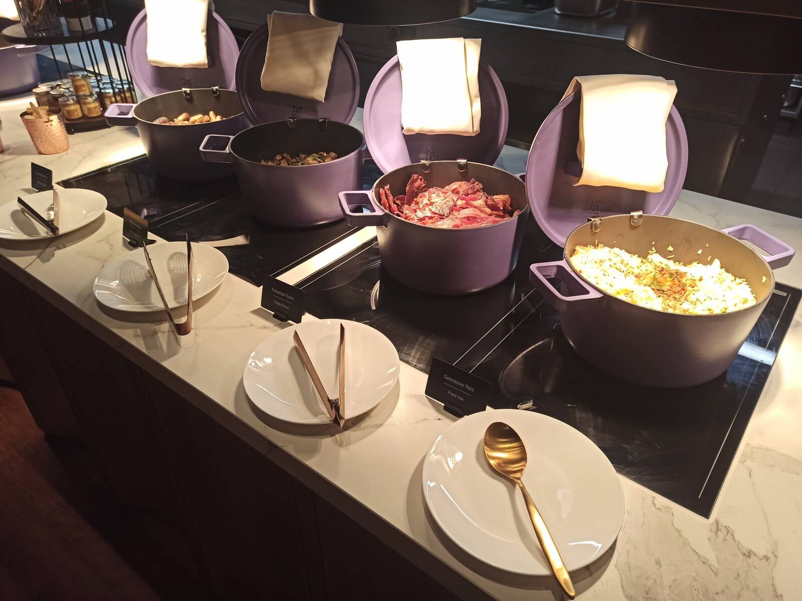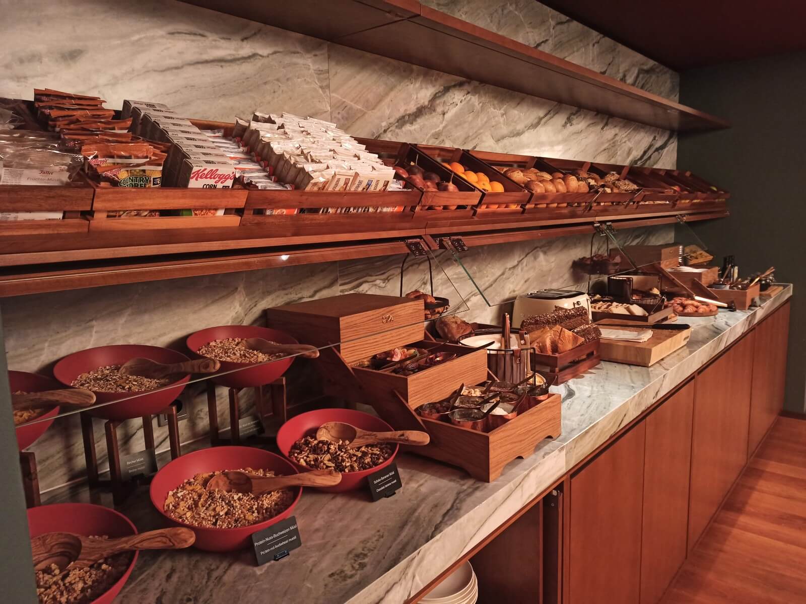 Am nächsten Morgen habe ich mir das Frühstücksangebot im Greta Oto näher angesehen. Das Büffet ist auf verschiedene Bereiche des Restaurants verteilt. Kaffee-, Tee- und Eierspezialitäten sowie Bowls und weitere Gerichte können beim Personal bestellt werden. Neben den klassischen warmen Gerichten werden verschiedene Aufschnitt- und Käsesorten, Müsli, frisches Obst und diverse Backwaren angeboten. Außerdem gibt es eine große Auswahl an kalten Getränken. Ich habe das Onsen Ei “Benedict” ausprobiert und war zufrieden.
