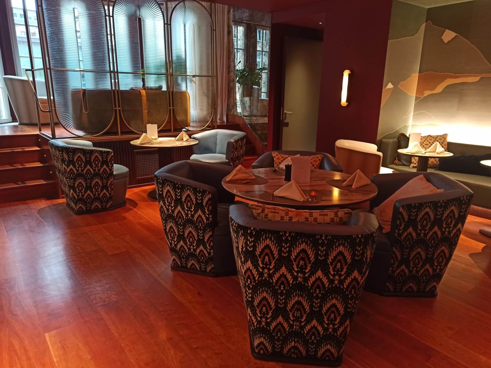 Auch die angrenzende Bar ist nach dem Greta Oto benannt. Die Sitzgelegenheiten verteilen sich rund um die Bar, die im Zentrum des gediegenen Raums steht.