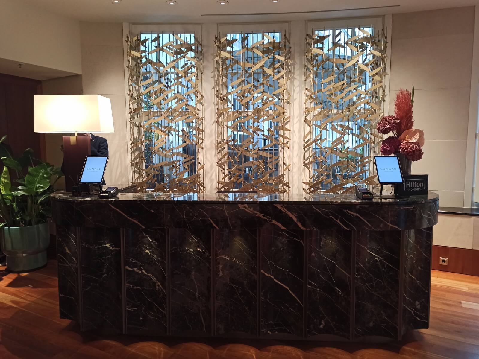 Angereist bin ich mit dem Zug und innerhalb von wenigen Minuten hatte ich das Hotel zu Fuß vom Hauptbahnhof erreicht. Das Conrad Hamburg hat jeweils einen Eingang an der Mönckebergstraße sowie einen Eingang an der Bugenhagenstraße. Die Rezeption befindet sich im zweiten Stock des Levantehauses, einem historischen Kontorhaus aus dem Jahr 1912. Im Erdgeschoss befindet sich ein Concierge-Desk.