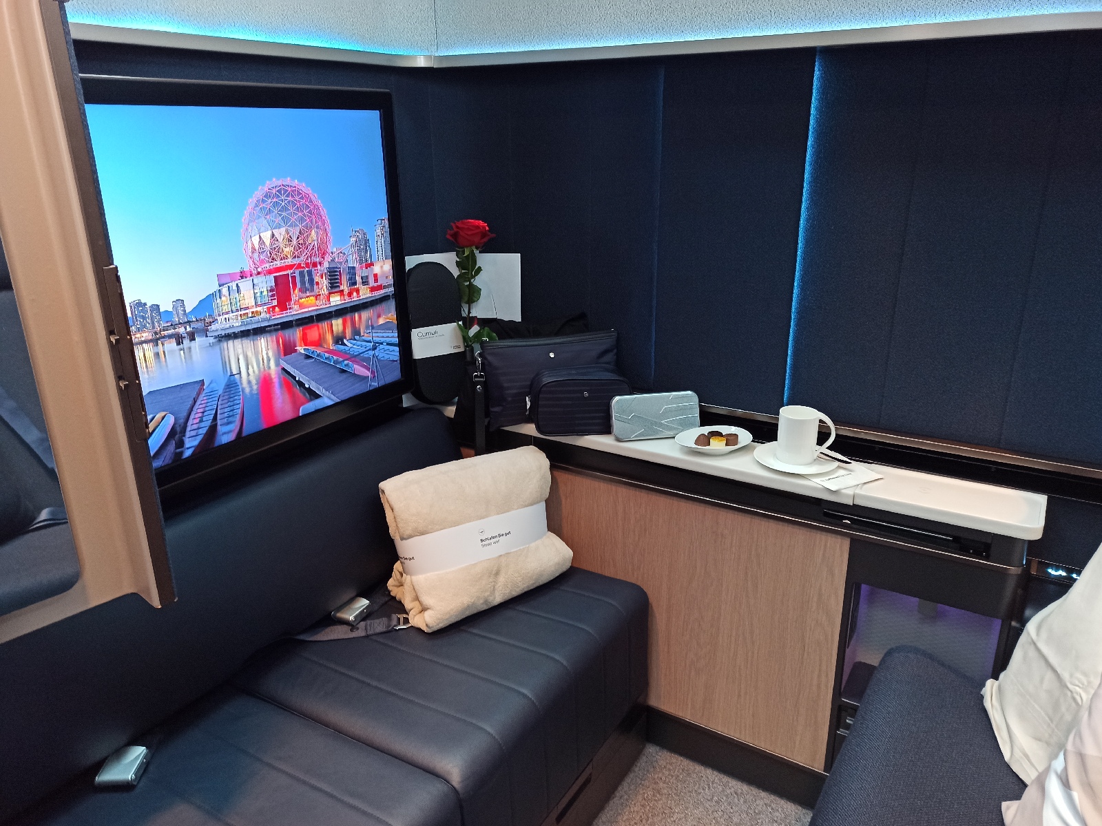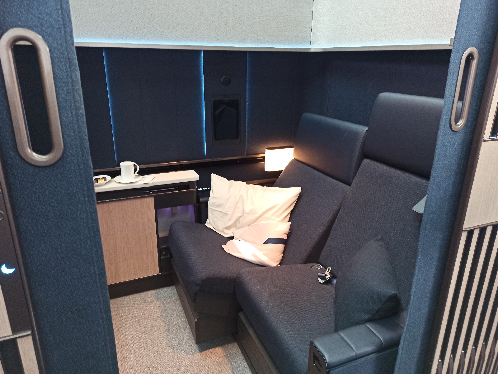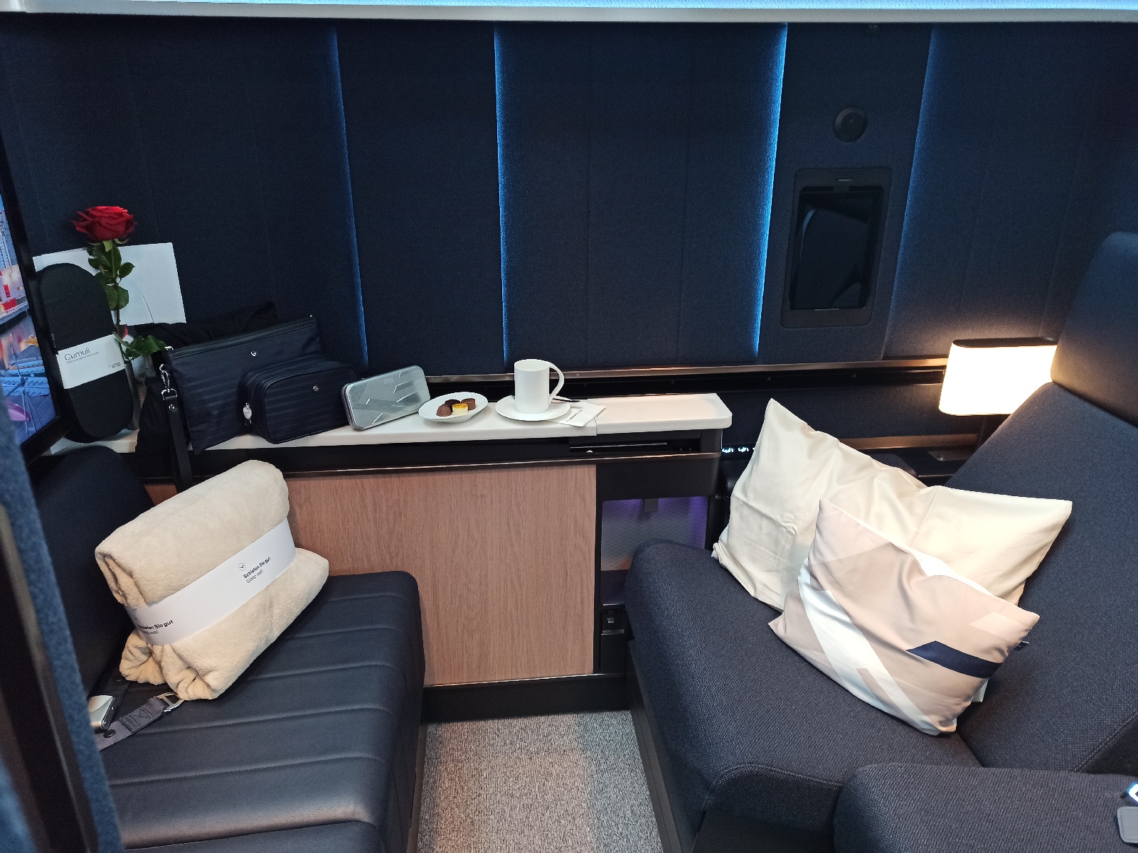 Alle Suiten sind mit einer Tür aus solidem Schaumstoff ausgestattet, der in zwei Stoffschichten eingebettet ist. Diese spezielle Gestaltung der Türen war notwendig, um die Freigabe der Luftsicherheitsbehörden zu erhalten. Im Notfall können Passagiere diese Schaumstofftür quasi durchbrechen. Dennoch ist der Stoff blickdicht. Die Passagiere haben die Möglichkeit, den Sitz in der Suite nach persönlichen Bedürfnissen wärmen oder kühlen zu lassen. Zudem sind die Suiten mit einer eigenen Garderobe, einer eigenen Minibar und einem Esstisch ausgestattet, an dem auch eine zweite Person Platz findet. Der Bildschirm des Inflight-Entertainment-Systems wird sich über die ganze Breite der Suite erstrecken. Die Bildschirme verfügen zudem über eine Bluetooth-Verbindung für kabellose Kopfhörer. Das Essen serviert die Crew zu der von den Gästen gewünschten Zeit.