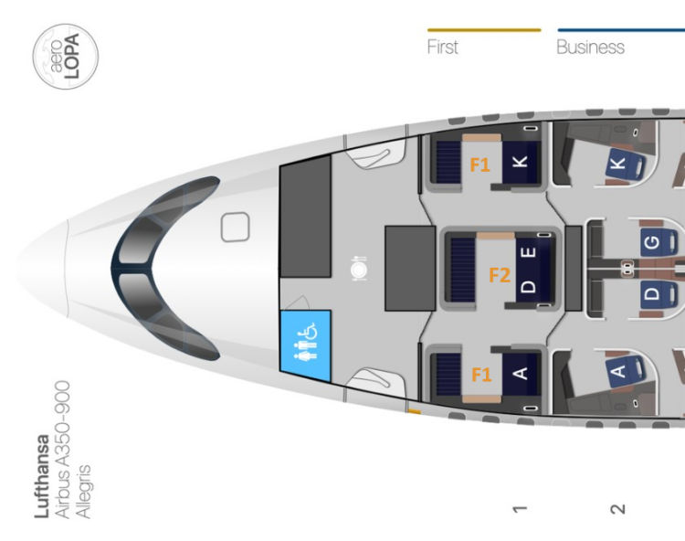 Wir haben uns die einzelnen Sitztypen angesehen und stellen dar, wo sie sich in der jeweiligen Kabine befinden und was sie auszeichnet. Als Anhaltspunkt haben wir den Sitzplan eines Airbus A350-900 mit Allegris-Kabine ausgewählt, wie er beim Portal „aeroLOPA“ zu finden ist. So können wir besser auf jede Reiseklassen eingehen. Informationen, in welchen Flugzeugen und auf welchen Routen die neue Allegris-Kabine zu finden ist, findet ihr in unserem Artikel zu den Lufthansa Allegris Strecken & Zielen.