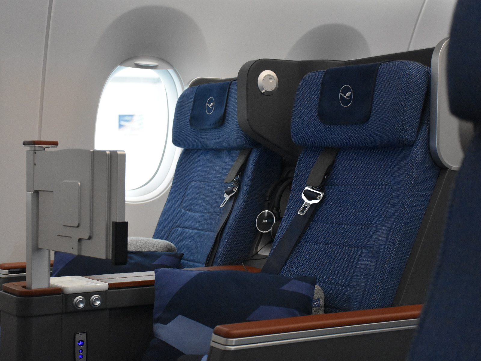Bei den Sitzen hat sich Lufthansa gegen ein Modell von der Stange entschieden und diesen von Grund auf selbst entwickelt. Die drei großen und bekannten Hersteller Stelia, Collins und Thompson produzieren nun nach den Plänen der Lufthansa die Sitze.