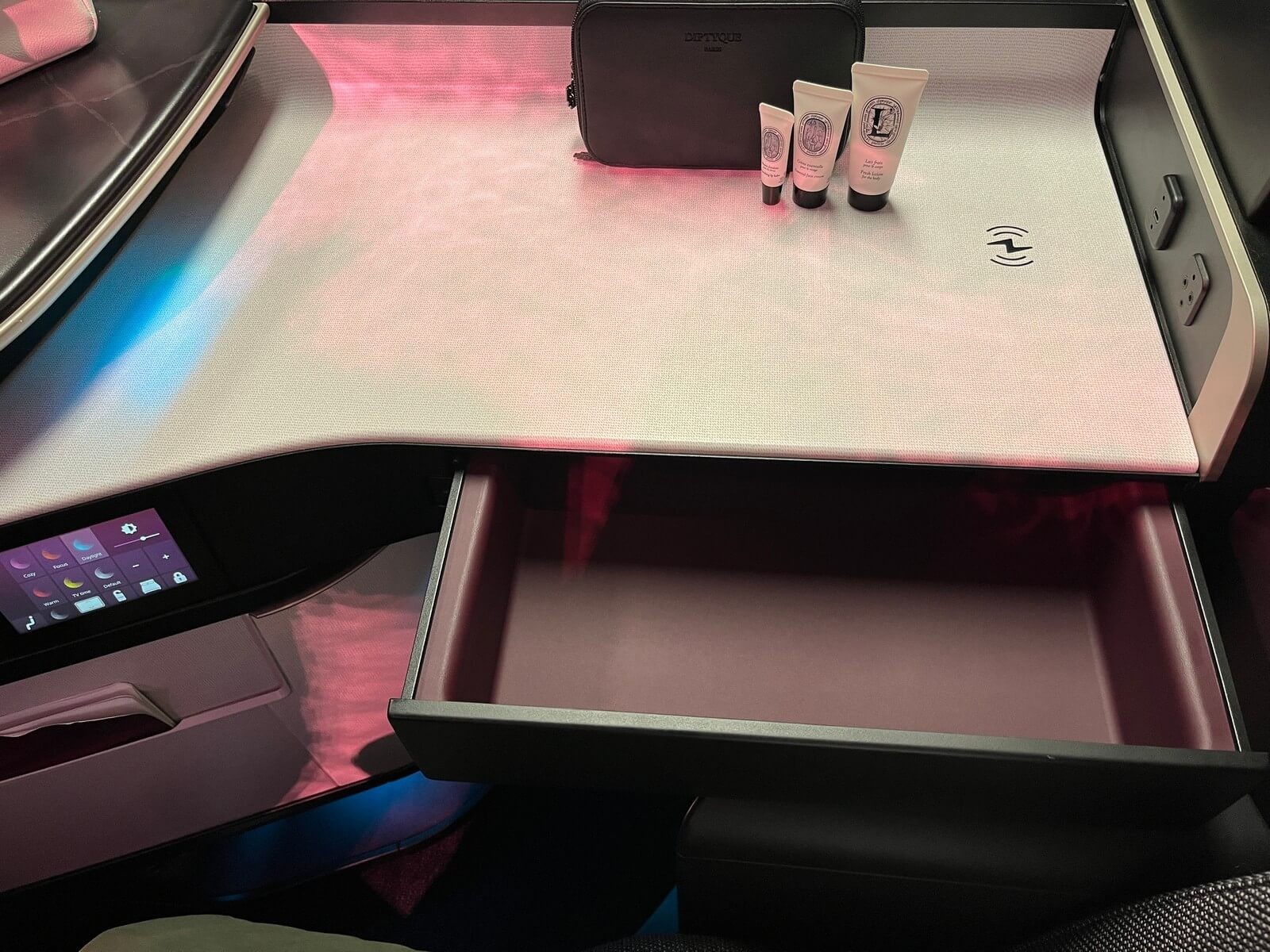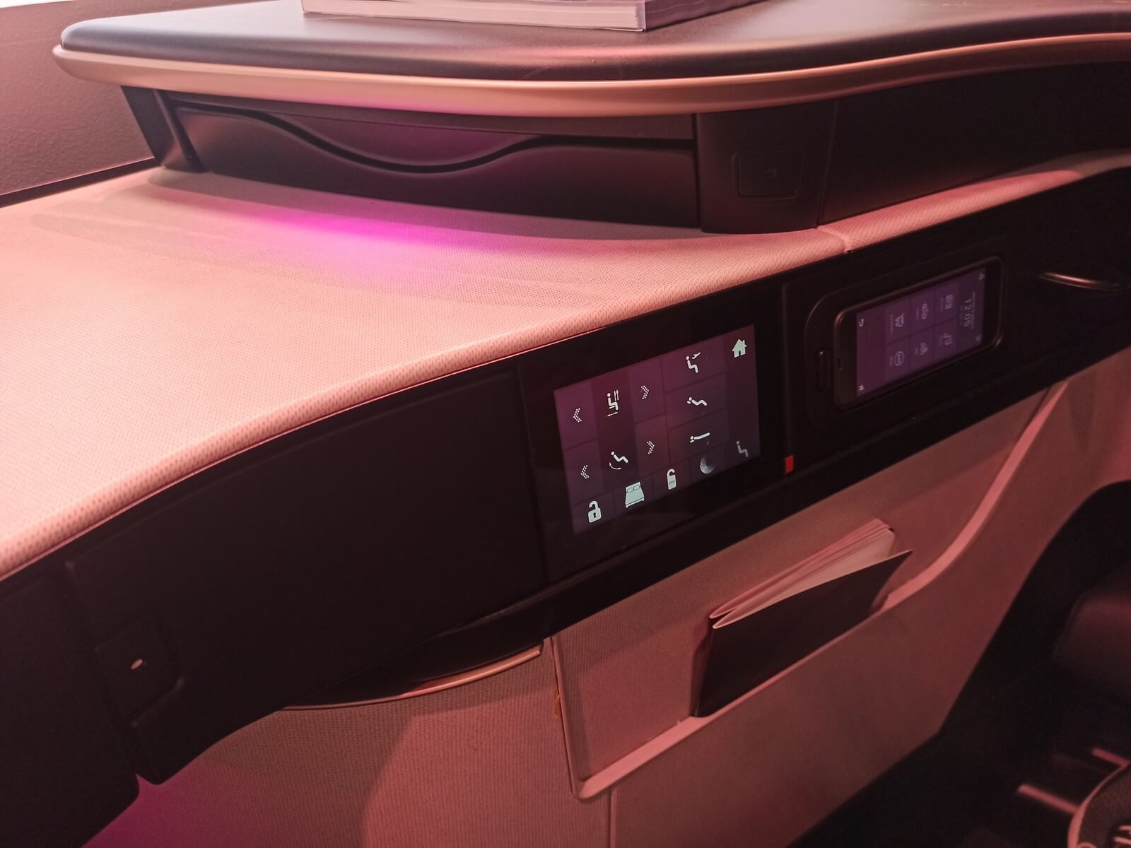 Kleinere aber sehr nützliche Änderungen sind ein kleiner Stauraum für die Schuhe und eine Schublade in der Konsole, die verschließbar ist. Zudem hat man eine Staufach geschaffen, in das auch Laptops hineinpassen. Die Steuerung der Beleuchtung, des Sitzes und weiterer Elemente läuft nun ausschließlich über einen kleinen Touchscreen. Beim Bildschirm handelt es sich um einen 4K-OLED-Monitor.