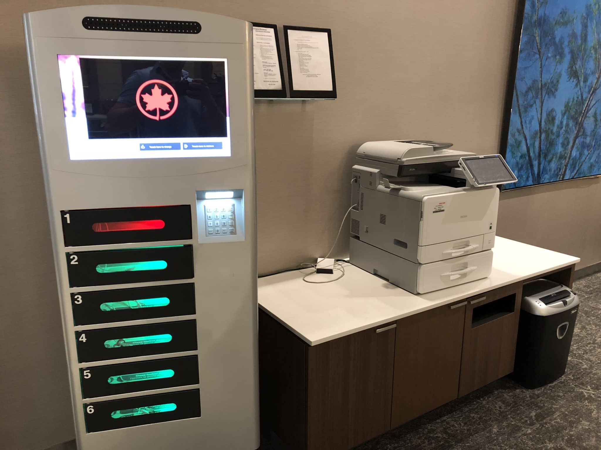 Nach dem Eingang steht neben dem Service Desk das bekannte Flugzeugmodell von Air Canada. Nachdem unser Zugang geprüft wurde durften wir die große Lounge betreten. Der erste Eindruck war: “Wow, die sieht aber gut aus!” Kurz nach dem Eingang befand sich eine große Auswahl an Zeitschriften. Biegt ihr nach dem Eingang links ab, befinden sich dort die Waschräume (Duschen bietet die Air Canada Maple Leaf Lounge Calgary nicht). Kurz danach folgte ein sehr großer Tisch mit Barhockern und zahlreiche Arbeitsplätze. Diese entsprachen den Arbeitsplätzen, die man aus Nordamerika und teilweise auch aus den Großraumbüros in Deutschland kennt. Zahlreiche Anschlüsse, Trennwand und eine Schreibtischlampe. Dazu gab es einen Drucker und Ladestationen für Smartphones. Sollte ein freier Platz vorhanden sein, könnt ihr euer Smartphone in die jeweilige Box legen und diese dann abschließen. Vergesst euer Smartphone am Ende nur nicht, sonst müsst ihr nochmal nach Calgary fliegen. Rechts vom Eingang befand sich eine Bar. Ein Koch stellte das Essen zusammen. Es boten sich zahlreiche Sitzmöglichkeiten innerhalb der Lounge. Die hohen Decken in der Lounge ließen diese wirklich groß wirken und sorgten auch für viel Licht in der Lounge. Auf einer Seite befand sich eine große Fensterfront mit Blick auf das Rollfeld. Es gab noch zwei Sofas mit Blick auf einen Fernseher, auf dem aktuelle Nachrichten gezeigt wurden. In einer Ecke der Lounge stand dann noch eine kleine coole Bullrider Statue, die die Lounge zur Eröffnung erhalten hat. Ich weiß nicht, ob das Bullriding so beliebt ist in Calgary, aber irgendeine Bedeutung muss es ja haben. Diese Ecke war ein wenig wie eine Lodge in den Rockies gestaltet und bot auch einen Gas Kamin. Die Verbindung zum WiFi funktionierte ohne Probleme. Darüber habt ihr sogar Zugang zum Press Reader, wo sich zahlreiche Zeitungsartikel aufrufen lassen. Hier ein paar Impressionen aus der Lounge: