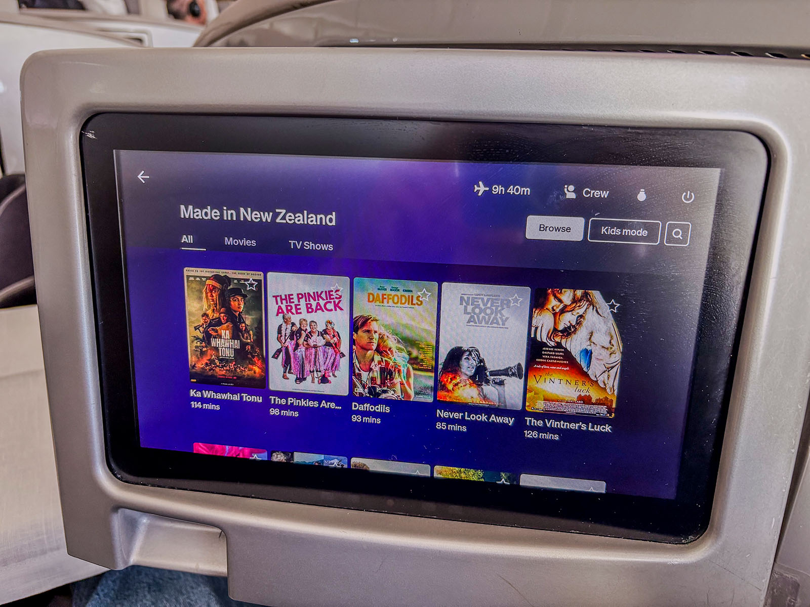 Bereits seit einigen Jahren bietet Air New Zealand kostenfreies WiFi auf den meisten ihrer internationalen Flüge an. Sofern die Maschine mit WiFi ausgestattet ist – was auf allen Boeing 777-300ER außer drei geleasten Ex-Cathay 777 der Fall ist – kann man sich einfach verbinden und komplett kostenlos im Internet surfen. Nach Eingabe eurer E-Mail Adresse auf wifi.airnz.com könnt ihr diesen Service zeitlich unbegrenzt nutzen. Bei meinem Flug funktionierte sowohl die Nutzung von VPN Verbindungen als auch Messaging-Diensten einwandfrei. Telefonate und Video-Streaming werden dagegen vom Netzwerk standardmäßig blockiert. Mittlerweile befindet sich Air New Zealand in einer Testphase mit Starlink und erprobt derzeit Highspeed-Internet auf ausgewählten Inlandsflügen. Sollte sich die Technologie bewähren, könnte zukünftig mit deutlich höheren Surfgeschwindigkeiten an Bord gerechnet werden.