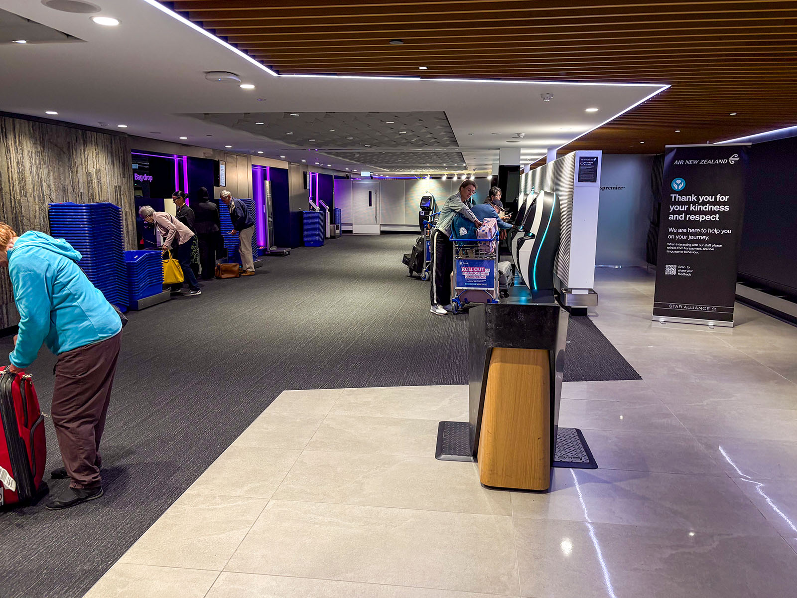 Obwohl ich inzwischen etwas unter Zeitdruck stand, lief der Priority Check-in am Auckland Airport unkompliziert ab. Ich ging direkt zum neuen Air New Zealand Premium Check-in Bereich, der 2023 neu renoviert wurde. Zugang zum Air New Zealand Premium Check-in haben Passagiere der Air New Zealand Business Premier und Premium Economy sowie Vielflieger mit Star Alliance Gold Status, Airpoints Elite, Airpoints Gold oder Koru Mitgliedschaft.