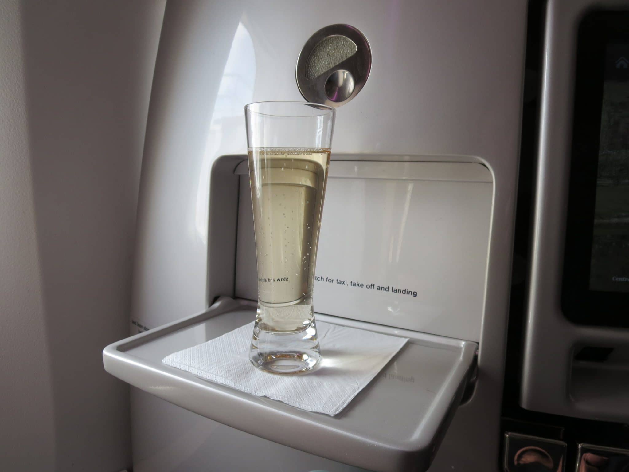 Nach dem obligatorischen Champagner zum Boarding folgte kurz nach dem Start der Essensservice. So richtig überzeugen konnte mich dieser nicht. Folgend ein paar Fotos…