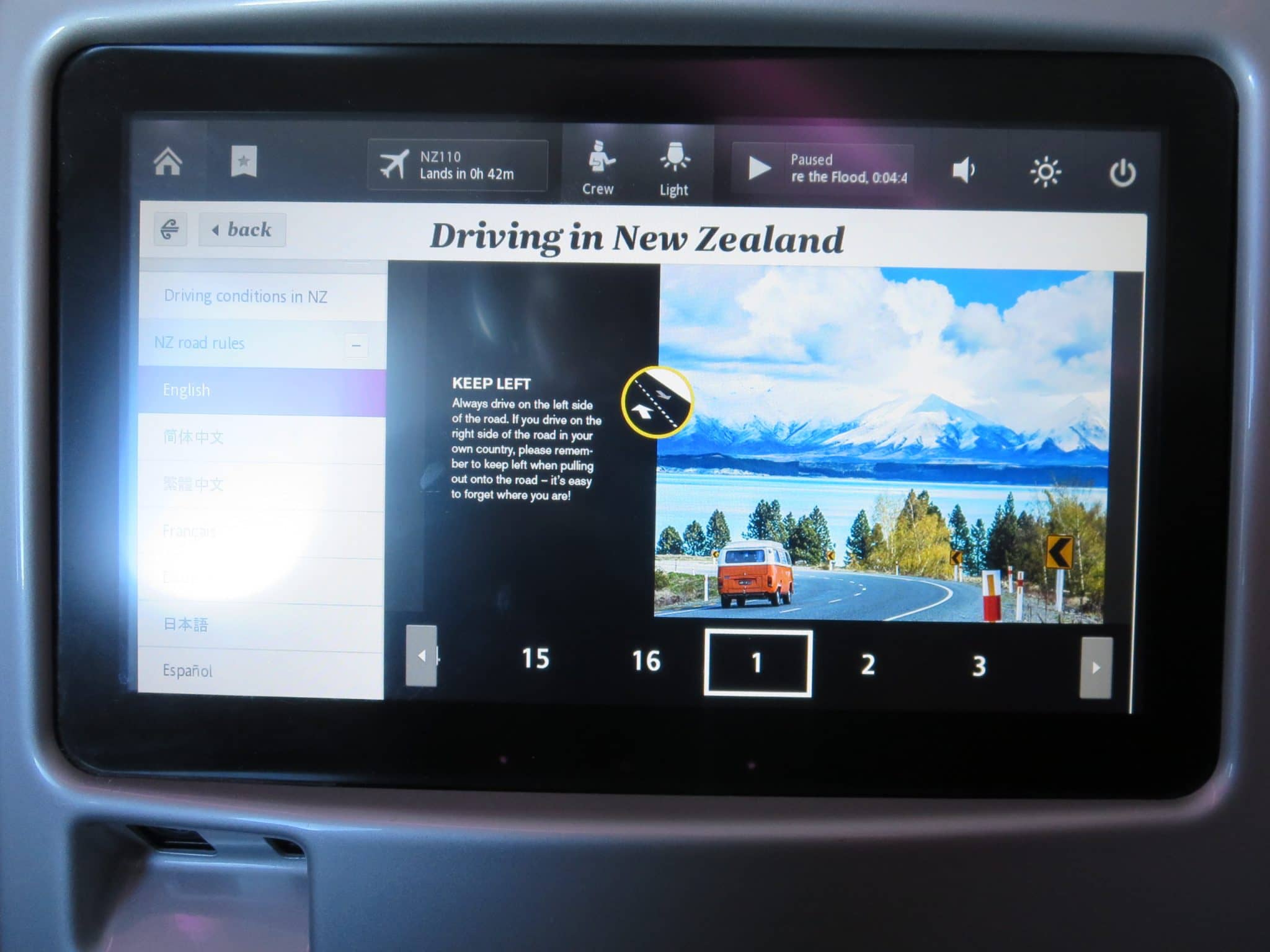 Das Entertainmentsystem von Air New Zealand hat mir wiederum ganz gut gefallen. Neben einer guten Auswahl an Filmen und Serien, gibt es eine ordentliche Flightshow und ein paar individuelle Features, wie Tipps zum Fahren in Neuseeland und eine Chatfunktion mit Sitznachbarn.