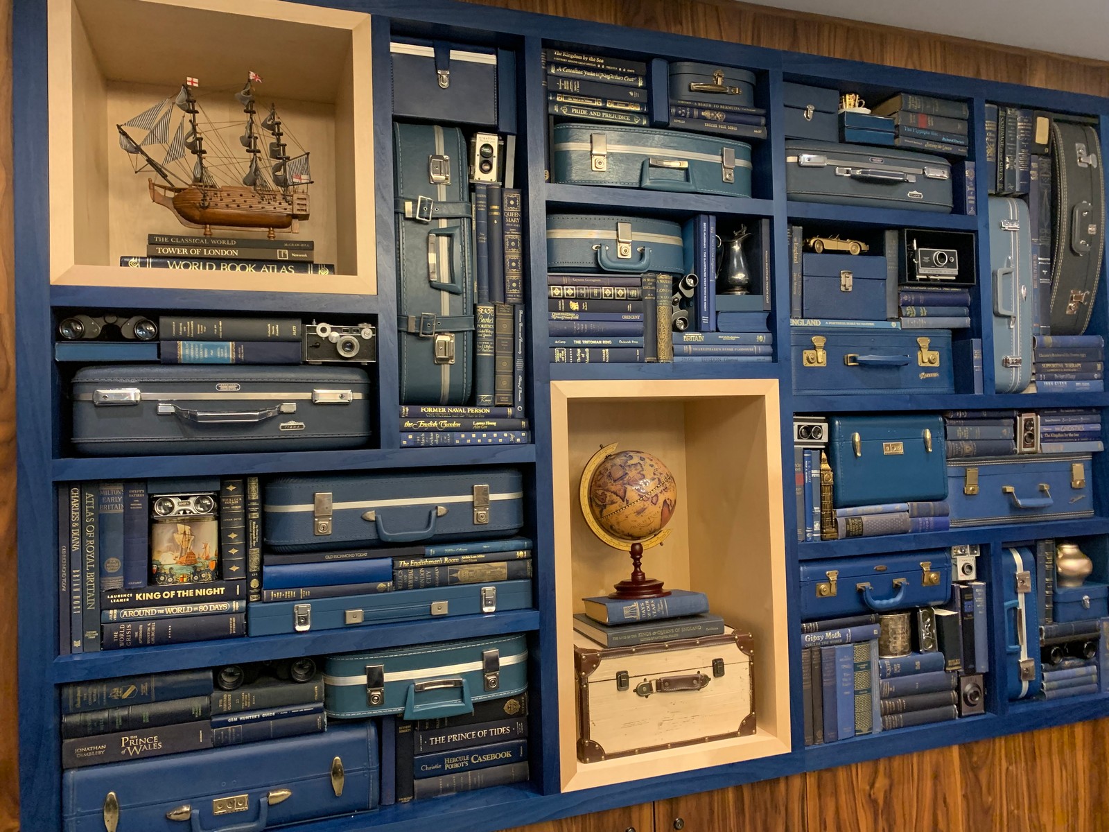Auch im Rest der Lounge wurde offensichtlich hoher Wert auf ein besonderes Design gelegt. American Express schafft es damit dem fehlenden Tageslicht und den niedrigen Decken entgegen zu wirken, und eine optisch sehr beeindruckende Lounge zu schaffen. Besonders gut gaben mir die in blau gehaltenen Regale mit verschiedensten Reise-Utensilien gefallen.
