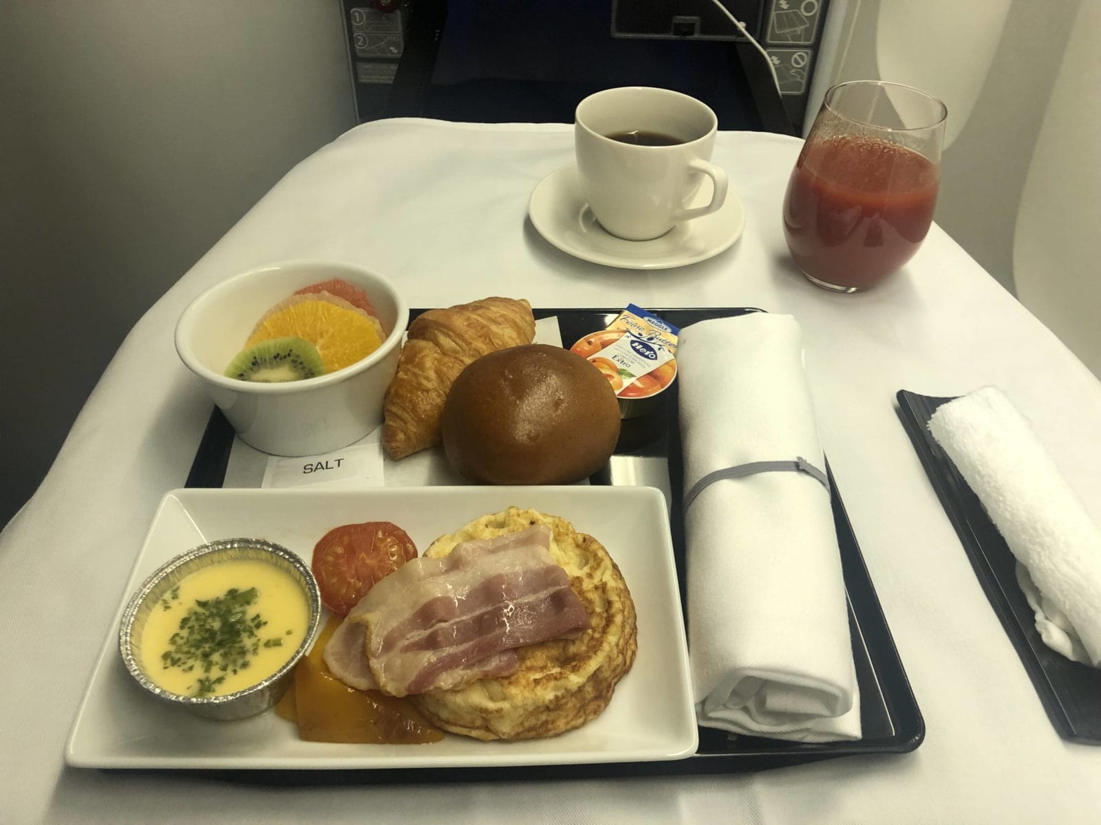 Das Essen begann mit dem “Gruß aus der Küche” gefolgt von der Vorspeise und Suppe. Als Hauptgericht wählte ich das Filetsteak, welches sehr gut geschmeckt hat. Als Nachspeise gab es dann noch eine Käseplatte. Getränke wurden sehr aufmerksam nachgeschenkt. Bei jedem neuen Gang wurde von der Stewardess geguckt, ob ich noch genug zu trinken hatte.