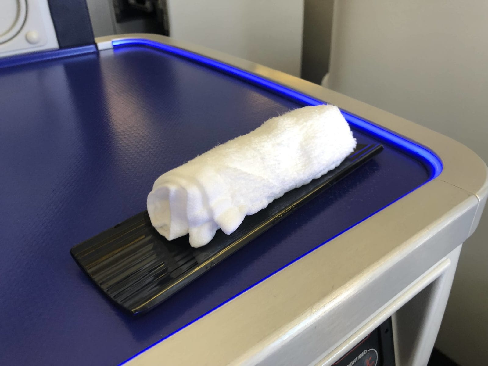 Bereits beim Einsteigen waren am Platz die wichtigsten Amenities vorzufinden. Neben einem Paar Slipper, einem Kopfkissen, den Kopfhörern und einer Decke, gab es auch ein Amenity Kit von Neal’s Yard. In dem Amenity Kit befand sich eine Zahnbürste, eine Augenmaske, Lippenbalsam, Ohrstöpsel, Handcreme und ein Feuchtigkeitsspray für das Gesicht.