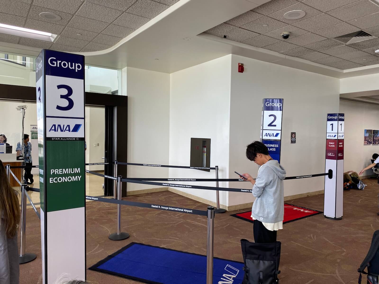 In der ANA Lounge Honolulu gab es zirka 15 Minuten vor dem Beginn des Boarding eine Lautsprecherdurchsage, dass in Kürze mit dem Borden für Flug NH183 begonnen werden würde. Wir packten unsere Sachen zusammen und machten uns langsam auf den Weg Richtung Gate C9. Leider war aufgrund von Sanierungsarbeiten an der Fluggastbrücke von Gate C4 kein Boarding direkt über die Lounge möglich.