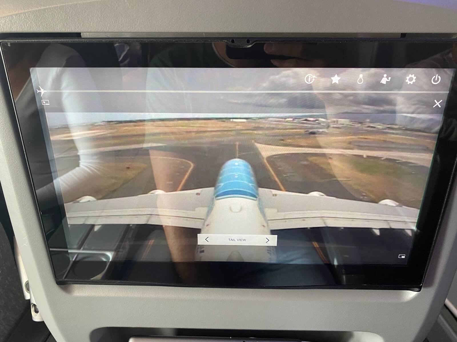 Beide Funktionen ließen sich über die Knöpfe auf der Innenseite der Armlehne steuern. Ein Controller war ebenfalls auf der Innenseite angebracht. Diesen habe ich nicht einmal genutzt, da der Monitor sich einwandfrei via Touch bedienen ließ. Lediglich die Passagiere in der Reihe vor uns in der Mitte hätten Probleme gehabt den Monitor via Touch zu bedienen. In Ihrem Fall war der Abstand zum Monitor relativ groß.