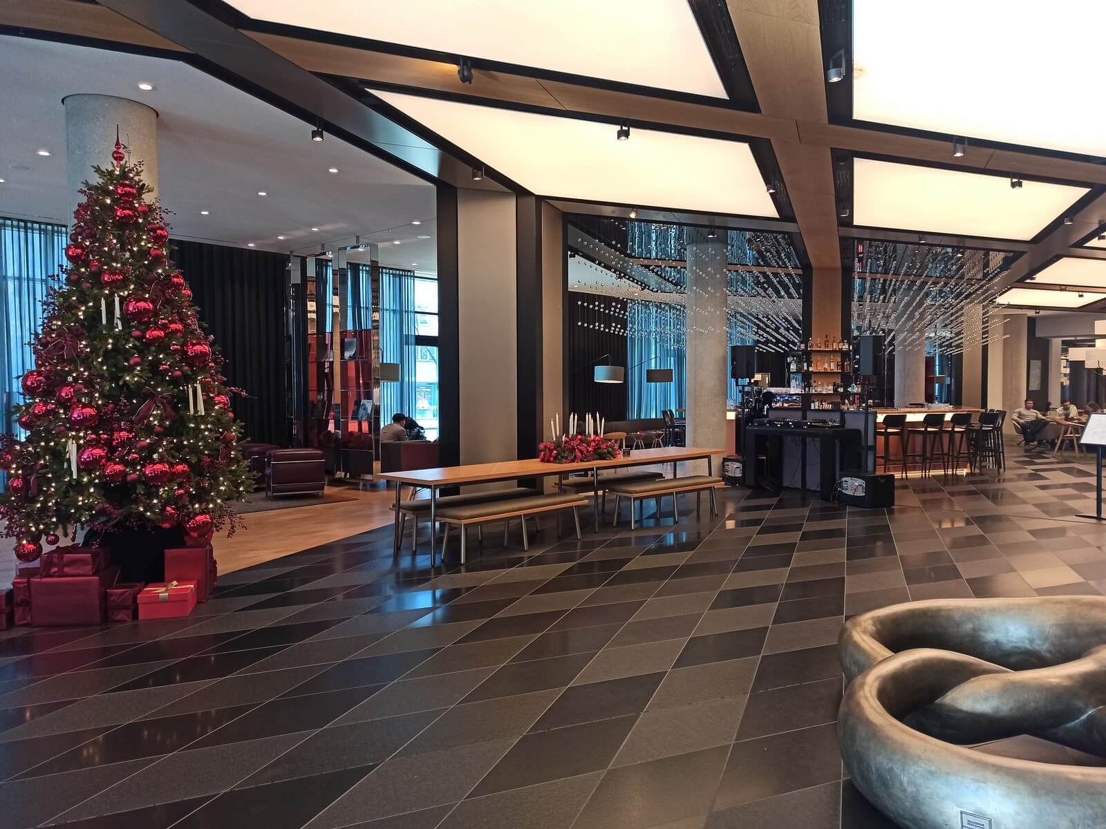 Mehrere Wochen vor dem Aufenthalt hatte ich per E-Mail ein Baby-Bett sowie einen Hochstuhl für unsere Tochter angefragt und dies wurde mit bestätigt. Wenige Tage vor der Anreise kam das Hotel noch einmal proaktiv per E-Mail auf mich zu. Außerdem habe ich am Morgen des Anreisetages telefonisch nachgefragt, ob ein Early Check-In gegen 12 Uhr möglich sei. Mir wurde am Telefon der Early Check-In zwar nicht garantiert, mir aber gute Aussichten eingeräumt. Letztlich stand das Zimmer um 12 Uhr bereit. Der Check-In verlief sehr freundlich und kommunikativ ab. Uns wurden die verschiedenen Vorteile der gebuchten Rate, die Öffnungszeiten des Spa-Bereichs sowie die Besonderheiten zur Silvesternacht erklärt. Zudem erhielten wir einen Gutschein für zwei Freigetränke in der Andaz Lounge Bar.