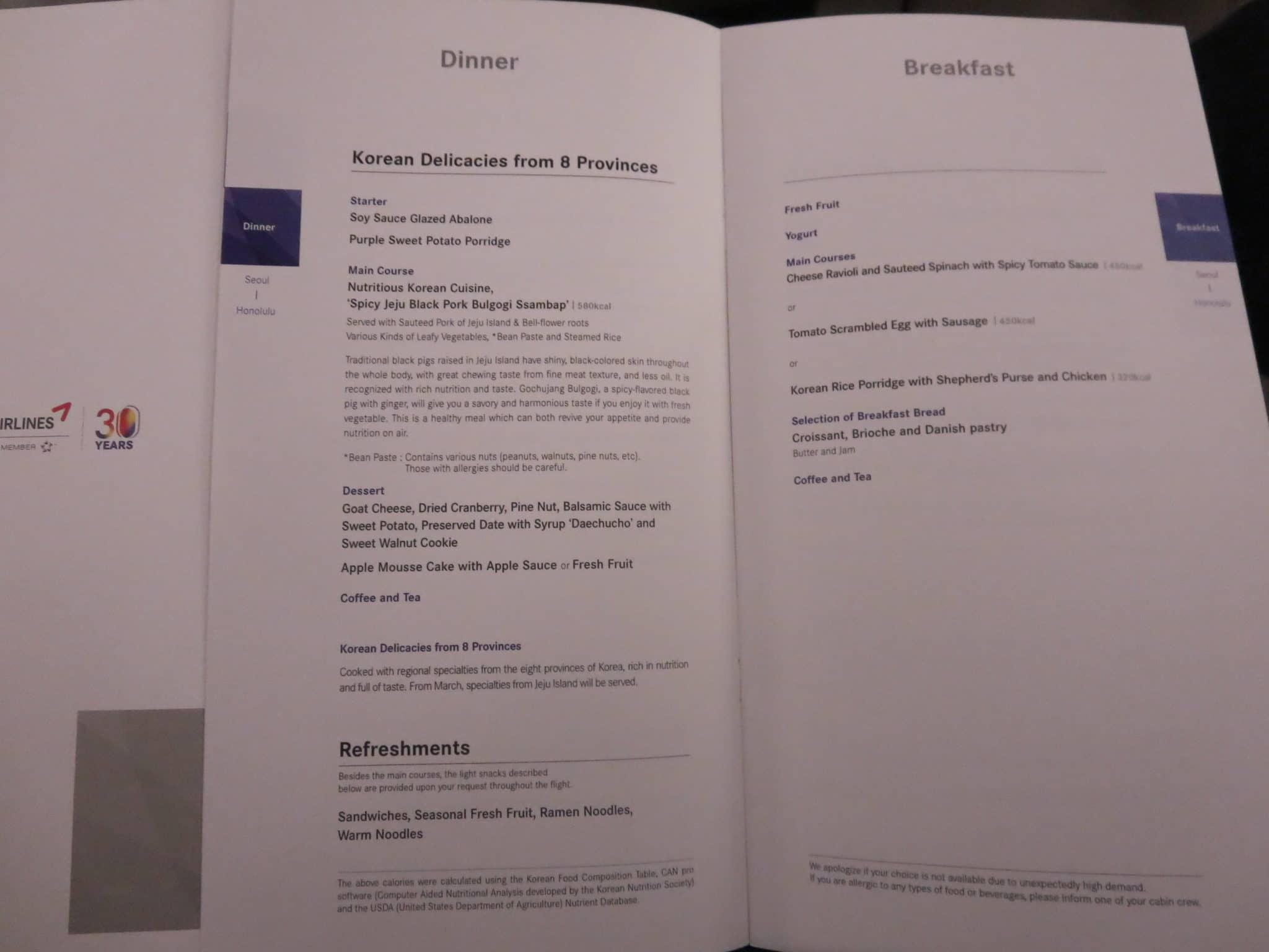 Asiana Business Class 777 – Menü/Essen