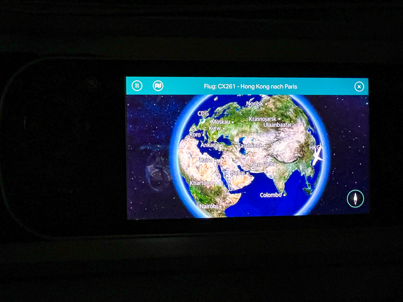 Die Airshow lässt sich sowohl auf dem großen Monitor als auch auf dem kleinen Handheld anschauen. Neben den üblichen Informationen zum Flug ist es auch möglich die von Cathay Pacific angeflogenen Ziele anzutippen und weitere Informationen darüber zu erhalten.