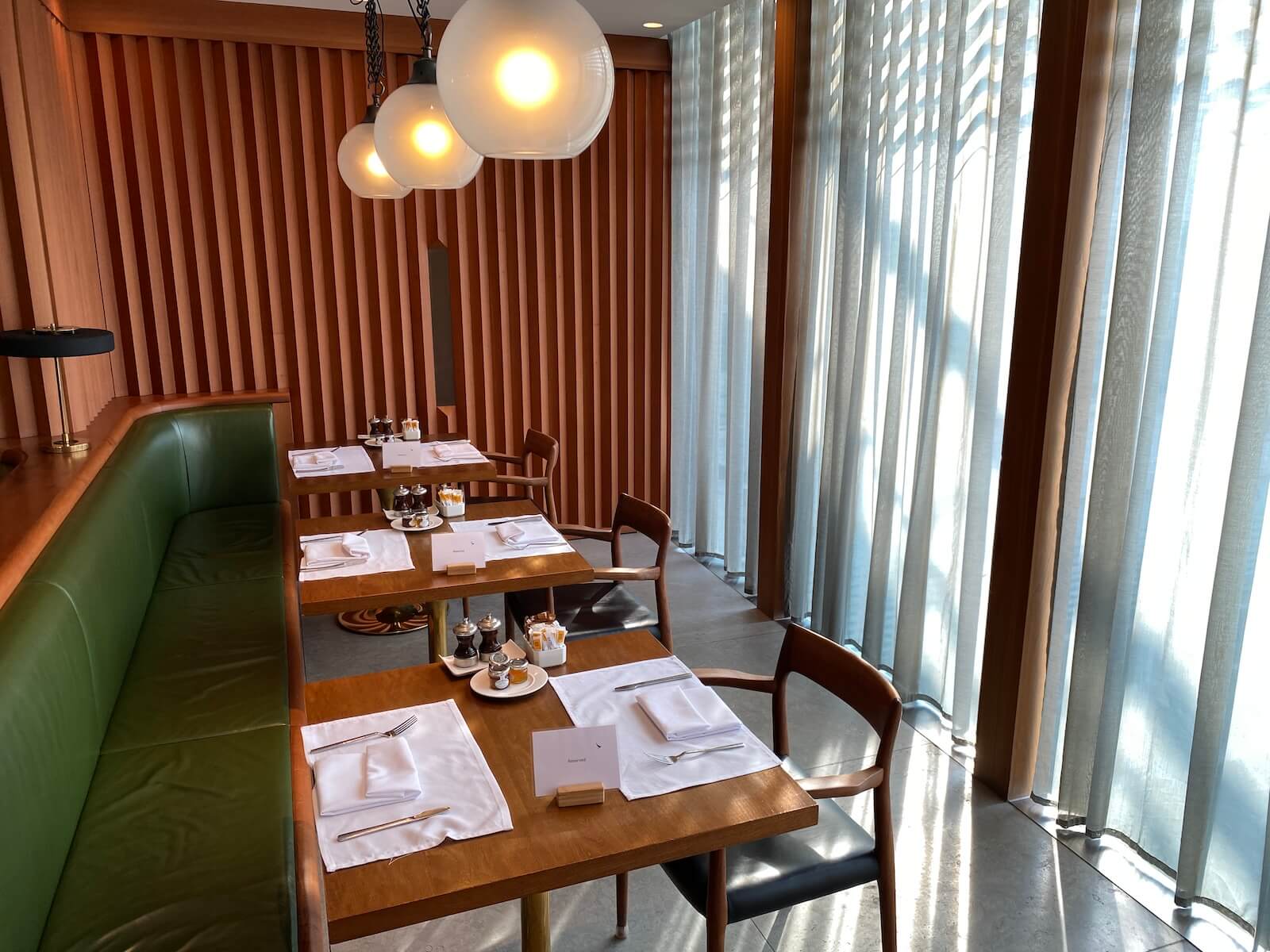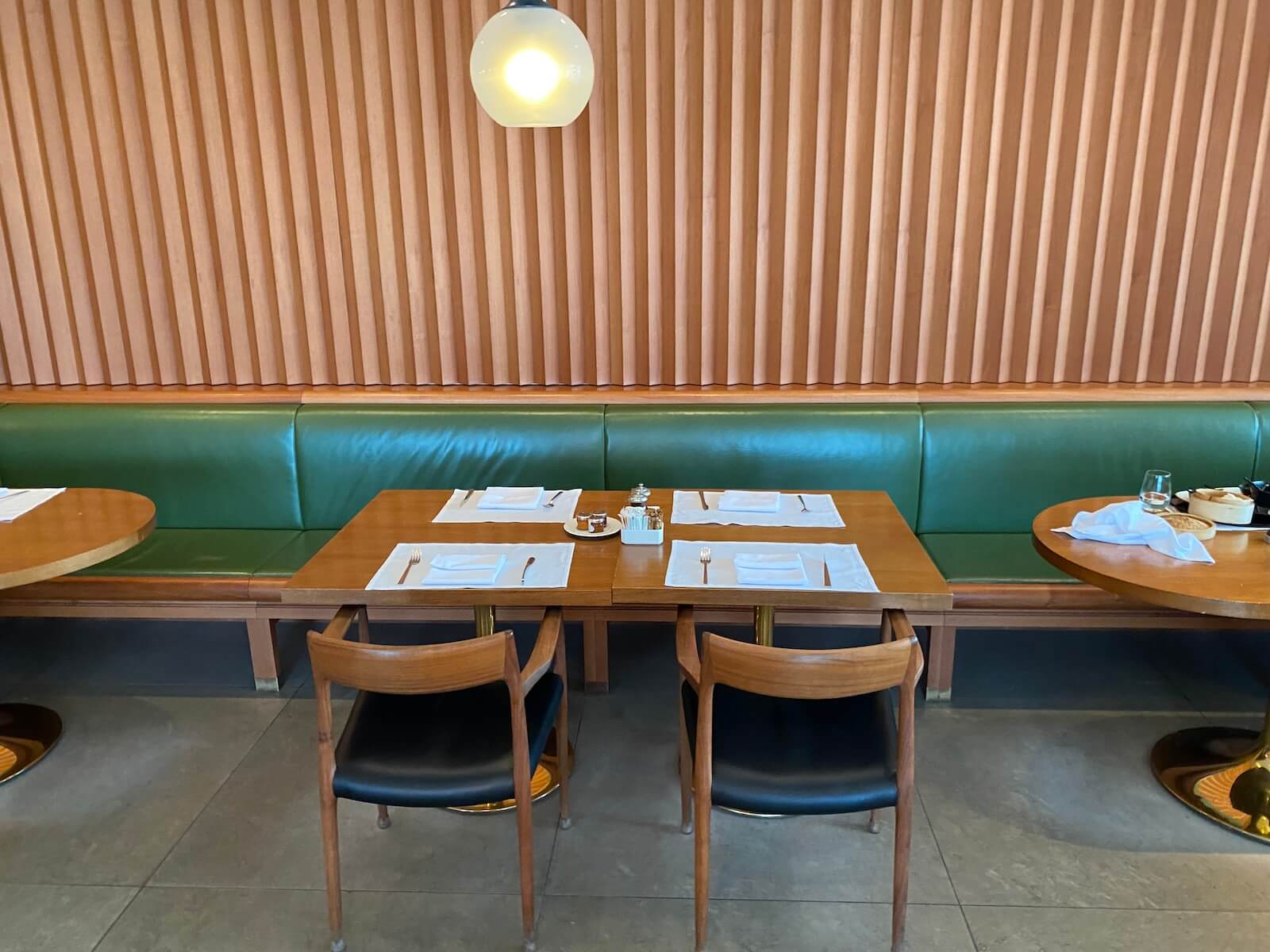 Das Restaurant ist in den klassischen Farben gehalten, grüne Lederbezüge für Bänken und Stühle und dazu überwiegend braune Holztöne – so wie man es von den Live Cooking Stations aus anderen Cathay Pacific Lounges kennt. Ich entschied mich zum Frühstück für das Dan Dan Mein, welches für mich die genau richtige Schärfe hatte.