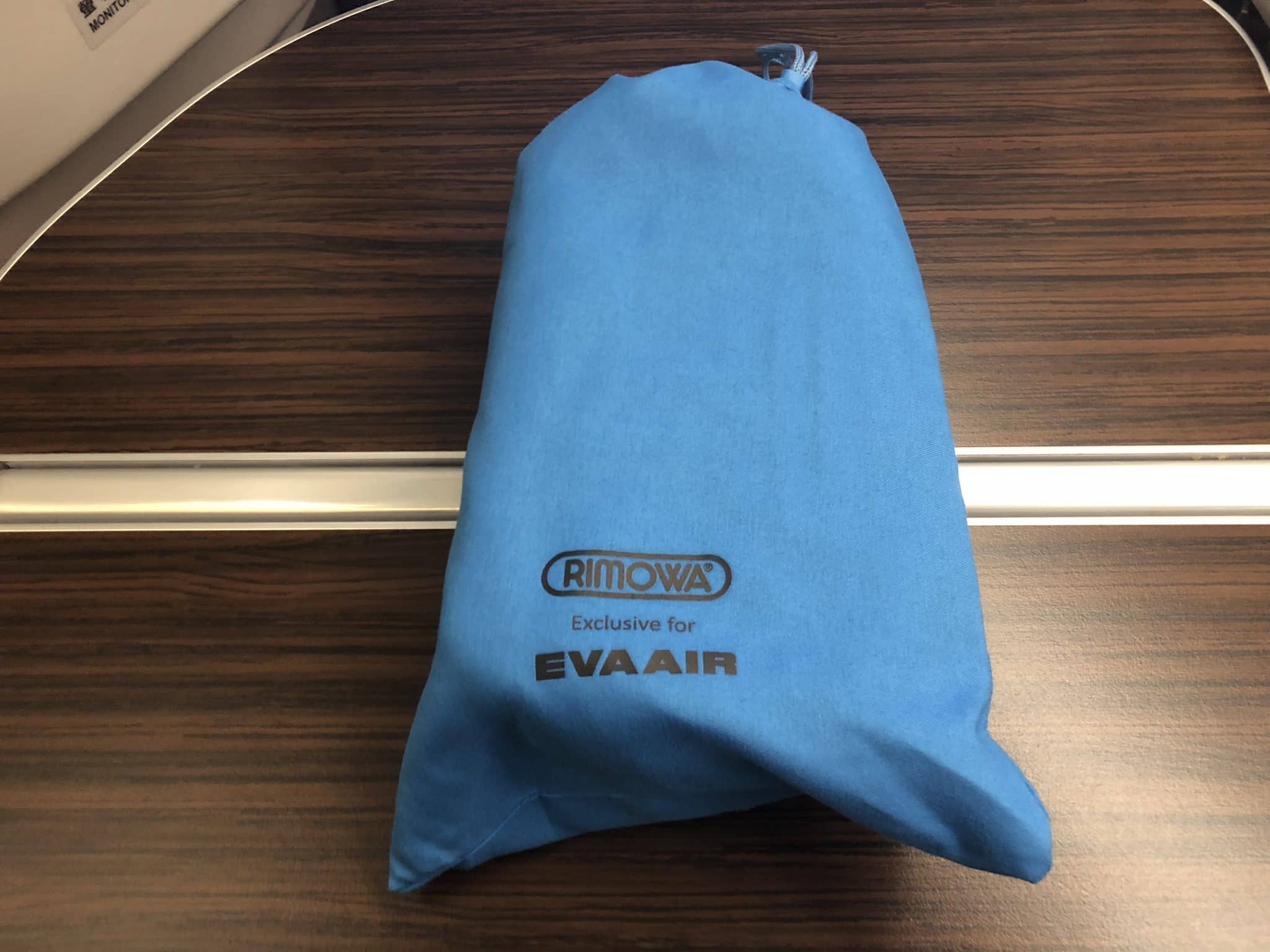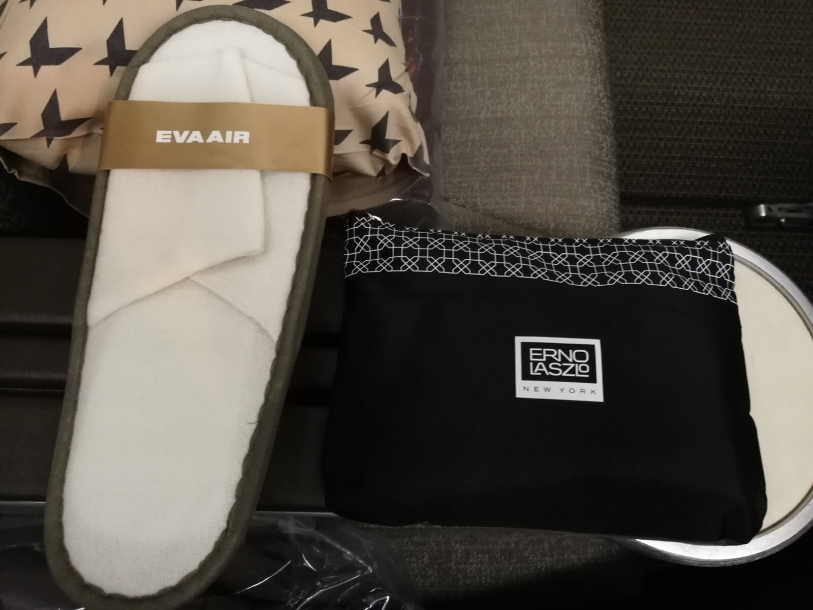 Der Abstand zum vorderen Sitz beträgt 96 cm und der Sitz hat eine Breite von knapp 50 cm. Das entspricht ungefähr den gleichen Masen wie der Lufthansa Premium Economy. Im Vergleich zur Lufthansa gab es für die Gäste der EVA Air Premium Economy, neben dem Amenity Kit, noch ein Paar Slipper. Das Amenity Kit war von Erno Laszlo.