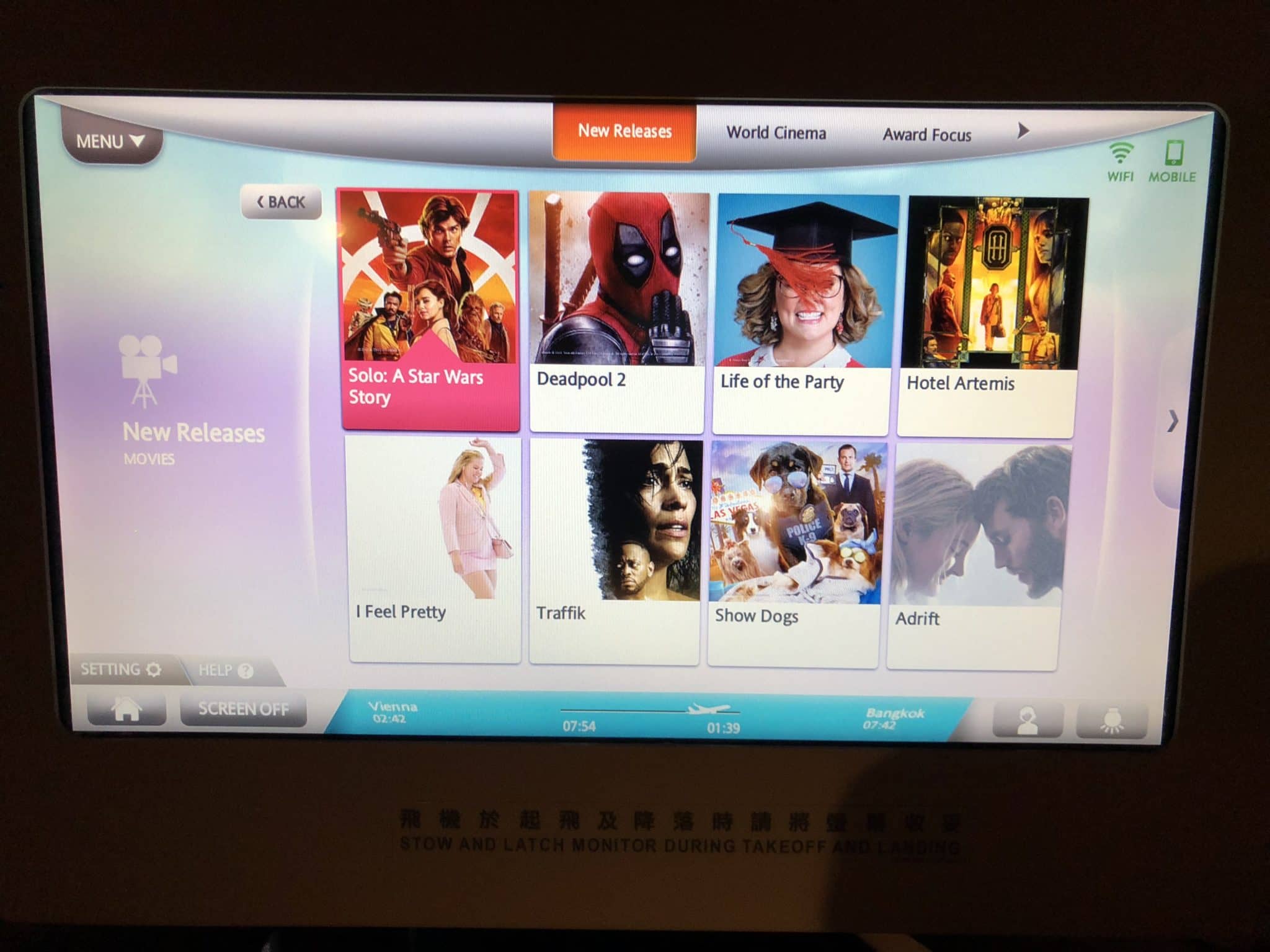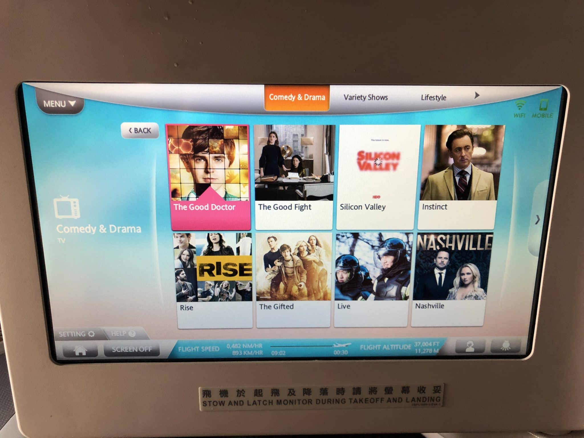 Wenn ich etwas an dem Flug kritisieren möchte, dann war es das Entertainment Programm und die geringe Auswahl an westlichen Filmen. Es gab ca. 6 – 10 Neuerscheinungen, wovon mir aber auch nur Star Wars Han Solo und Deadpool 2 etwas sagten. Die anderen waren wohl eher DVD Releases bei uns in Deutschland. Hinzu kamen natürlich noch ältere Filme, aber auch da war die Auswahl eher gering. Teilweise waren dann auch Filme dabei wie Harry Potter 1 und 2. Einige der Filme ließen sich auch auf Deutsch abspielen. Andere Filme wiederum nur auf Englisch und dann mit chinesischem Untertitel, den man nicht ausstellen konnte. Die Serien, die angeboten wurden, sagten mir auch alle nicht so wirklich zu. Daher habe ich schlussendlich auch wenig gearbeitet und die Zeit produktiv genutzt.