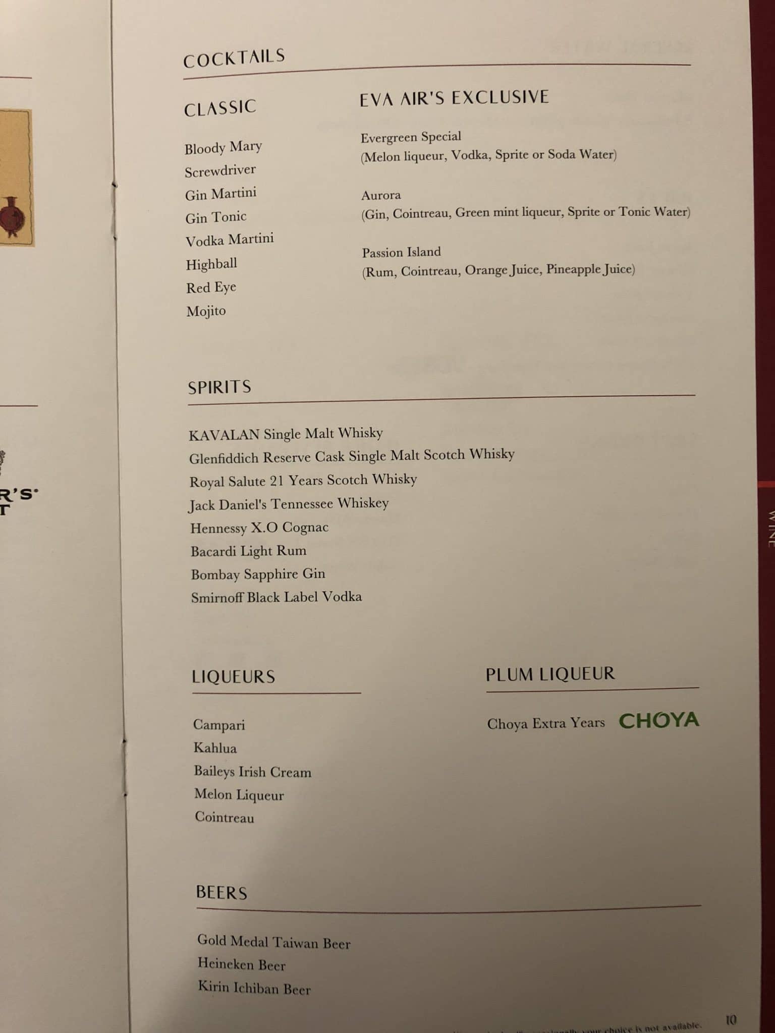 Kurz darauf brachte die Stewardess mir die Menükarte, welche bereits auf der richtigen Seite aufgeschlagen war. Wie auch bei Singapore Airlines habt ihr bei EVA Air die Option euer Essen vor dem Abflug auszuwählen. Für mich war leider nicht das Passende dabei und so entschied ich mich für das Hauptmenü an Bord. Noch vor dem Start kam die Flight Managerin, stellte sich vor und erkundigte sich nach meinem Essens- und Getränkewunsch nach dem Start. Bei der Hauptspeise entschied ich mich beim langen Flug für das Tsao Chicken. Die Flight Managerin sagte mir, sollte ich dieses nicht mögen, wäre es auch kein Problem das Essen nochmal zu tauschen.