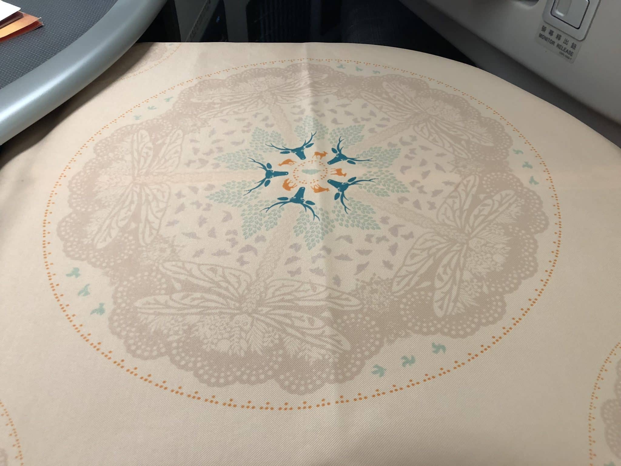 Hatte der Sitz auf dem Hinflug noch ein graues, dunkelgrünes Design, war es auf dem Rückflug etwas moderner. Die Ablagen waren in hellgrünen und Mocha-Farbtönen gehalten. Das wirkte doch ein wenig freundlicher.