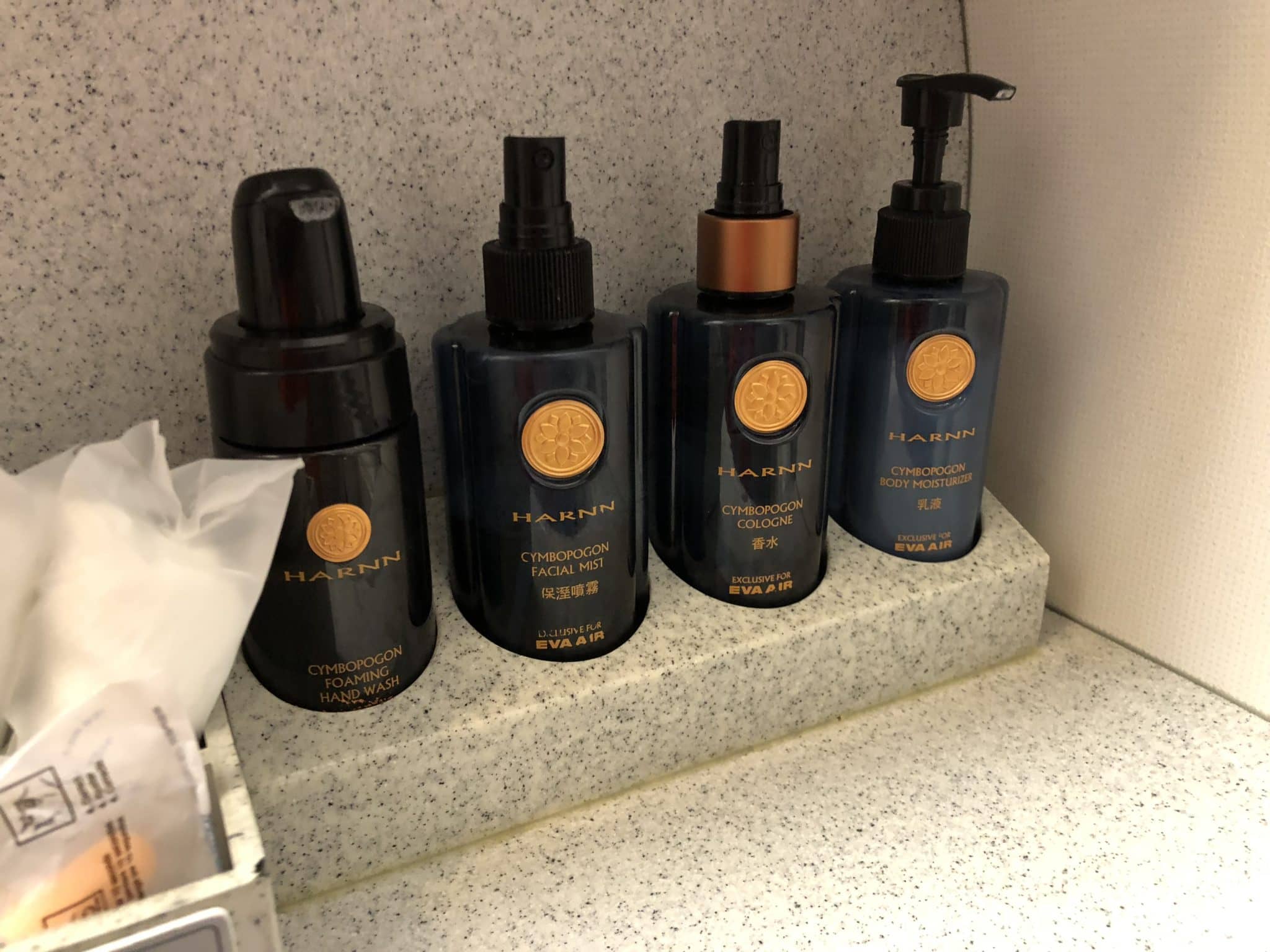 Insgesamt gibt es drei Toiletten für den Business Class Bereich. Ich würde euch empfehlen immer die Toiletten auf der linken Seite zu nutzen, da diese deutlich mehr Platz bieten, als die auf der rechten Seite. Auf den Toiletten gab es auf dem langen Flug, von und nach Wien auch Amenities, unter anderem Zahnbürste und Rasierer. Auf der kurzen Strecke von und nach Bangkok wurden diese entfernt. Die Toilette wurde regelmäßig von den Flugbegleiterinnen gesäubert und mit einem frischen Duft versehen. Creme und Seife waren von Harnn.