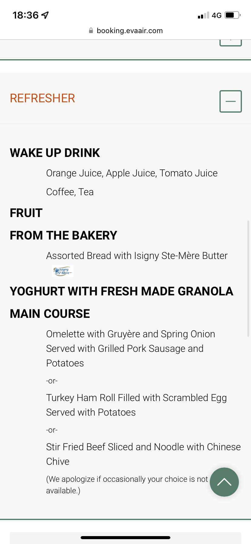 Kurz vor dem Pushback kam die Stewardess und überprüfte unser gewähltes Hauptmenü, welches wir bereits online bestellt hatten. Online gab es zwei zusätzliche Menüs, die auf der Karte im Flugzeug nicht angeboten wurden, dass war einerseits das Lachs Teriyaki und das Beaf Steak. Leider gab es auf diesem Flug kein Menü welches dem Gast ausgehändigt wurde, lediglich in der App oder im Entertainment System konnte ich mir das Menu noch einmal anschauen. Drei verschiedene Cocktails wurden serviert. Leider hatte ich das zu spät gesehen und zum Frühstück wollte ich mir keinen Cocktail mehr gönnen.
