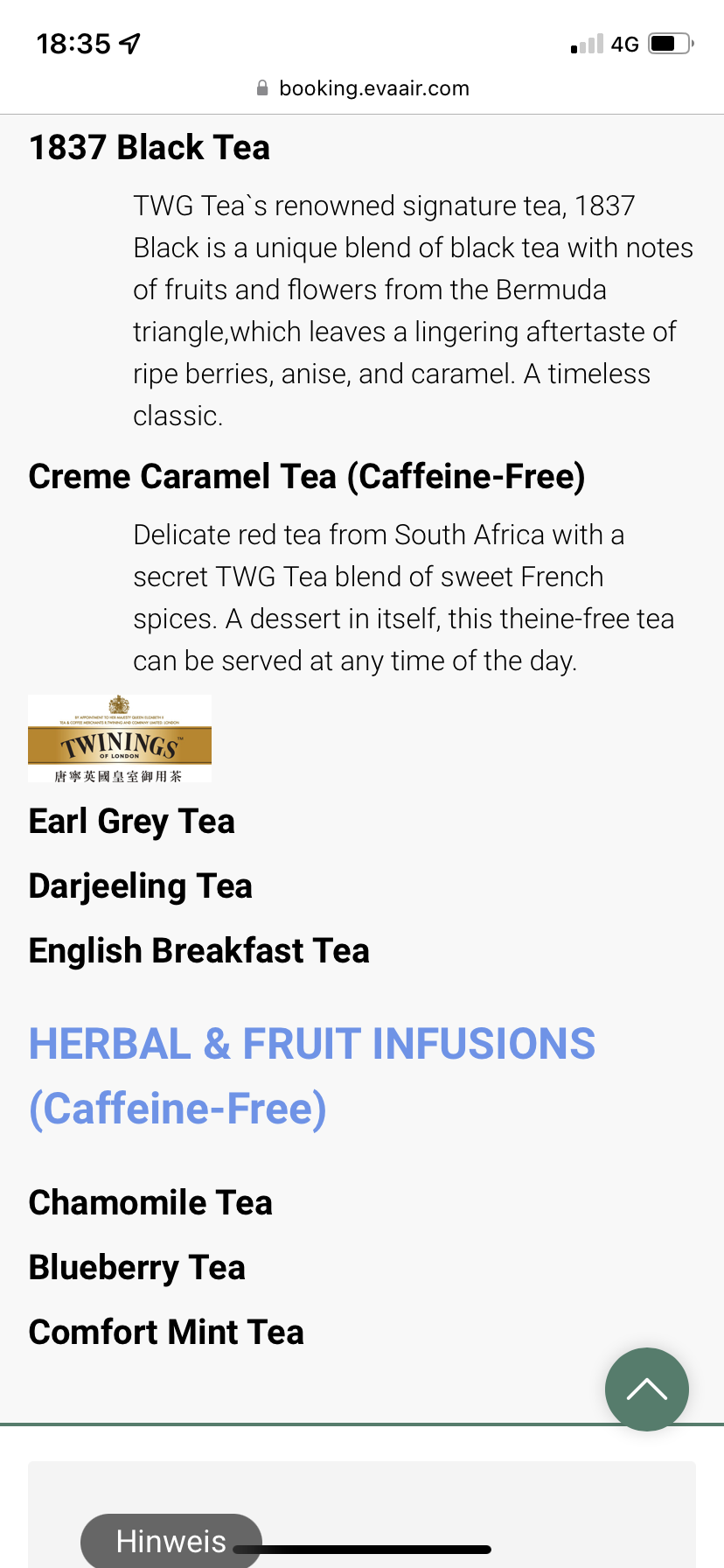 Mit zirka 15 Minuten Verspätung wurden wir vom Gate gepusht und es startete der Sicherheitsvideo. Dreißig Minuten nach dem Take-off begann der Service und hier kommen meine minimalen Kritikpunkte. Zuerst kamen die Stewardessen mit der Tischdecke und es war leider nicht mehr die klassische Tischdecke mit den aufgestickten Hirschen. Diese hatte ein Alleinstellungsmerkmal im Vergleich zu anderen Airlines. Es war leider nur eine simple Tischdecke im Karomuster. Vor dem Hauptgang wurde mir mein Drink zusammen mit einer Tüte Nüsse serviert, wie ihr auf dem Foto weiter oben entnehmen könnt. Dies ist mein zweiter Kritikpunkt, denn das ist für mich in der Business Class ein No-Go und in dem Fall können die Nüsse bei einer fünf Sterne Airline durchaus in einer Schale serviert werden. Diese beiden Punkte sind aber Klagen auf hohem Niveau und haben keine Auswirkungen auf dem Gesamteindruck auf den Flug mit EVA Air.