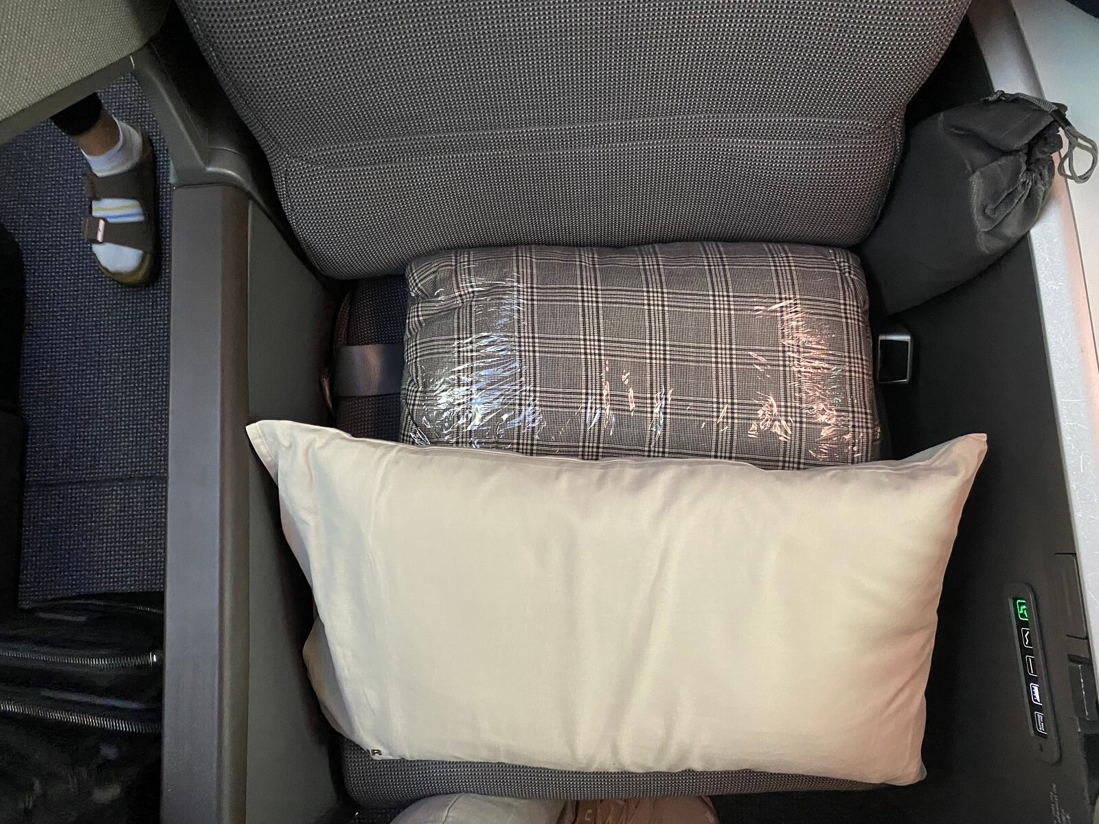 Insgesamt lässt sich festhalten, dass der Sitz zu meinen bevorzugten Business Class Sitzen auf dem Markt gehört. Der Sitz ist breit, bietet genug Ablageflächen und Verstaumöglichkeiten und das wichtigste für mich, ich sitze gerade und nicht irgendwie verwinkelt. Fast vergessen: Der Sitz hat einen Dreipunktgurt verbaut, welcher im Vergleich zu der Lufthansa Philippine Airlines Konfiguration keineswegs am Hals kratzte oder unangenehm störte.