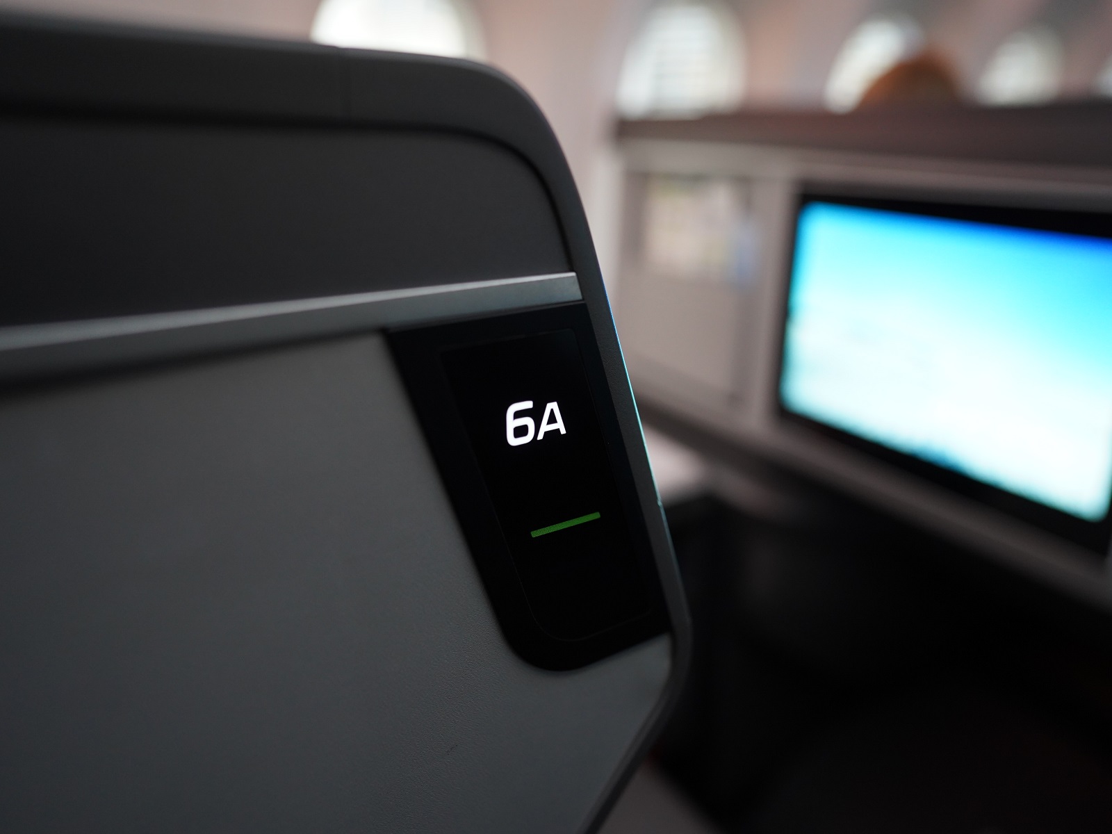 Beim Betreten der Boeing 787-10 wirkt die Business Class Kabine eher schlicht und langweilig, neumodern wie so mancher vielleicht sagen würde. Für die Kabine wurde ein Farbmix aus dunklen Farben gewählt, grau, schwarz und braun. Sicherlich kein Design was einem langfristig in Erinnerung bleibt.