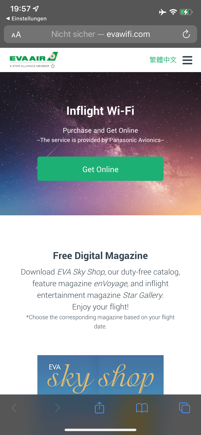 EVA Air Business Class Boeing 787-10 – WiFi