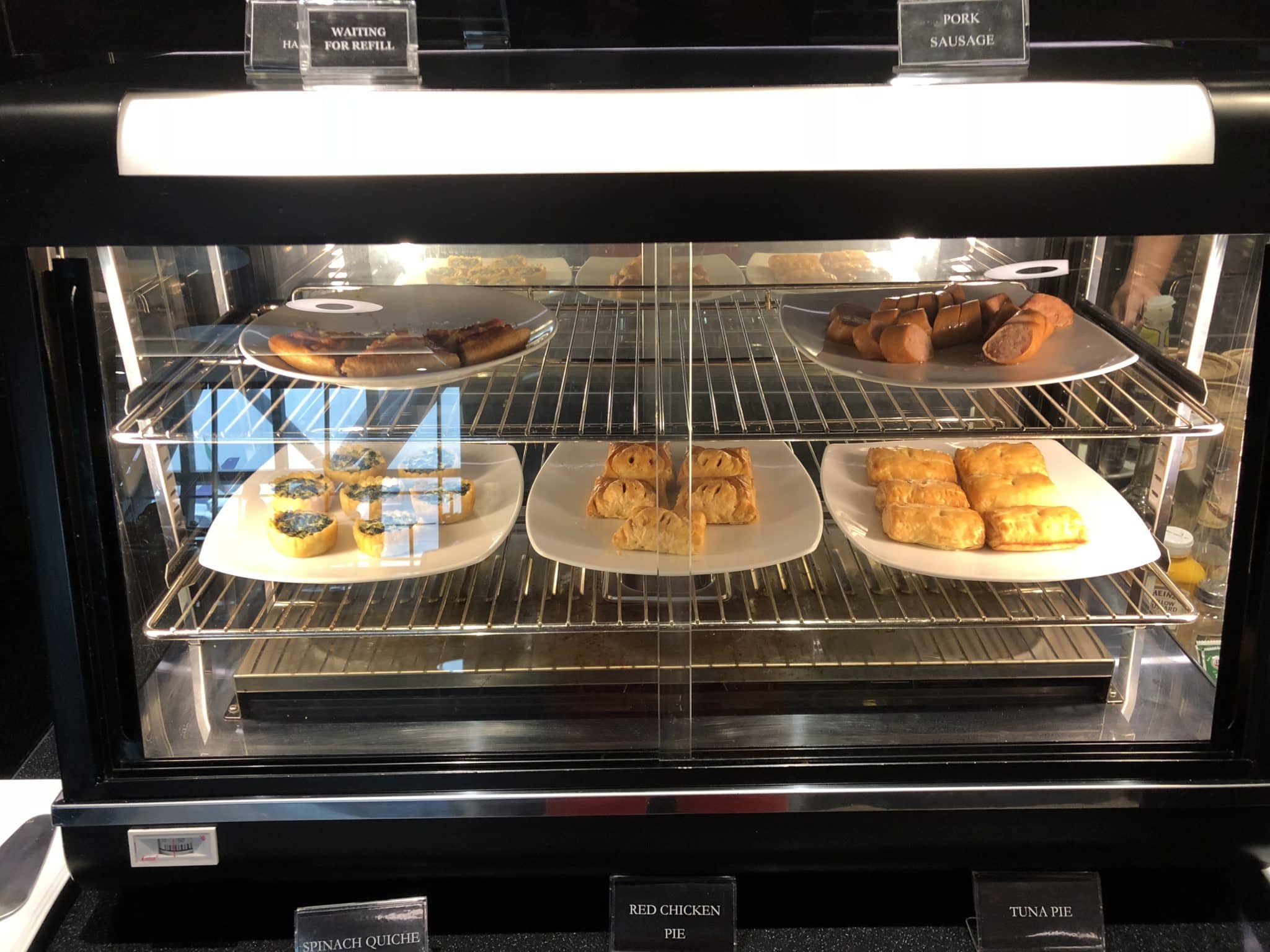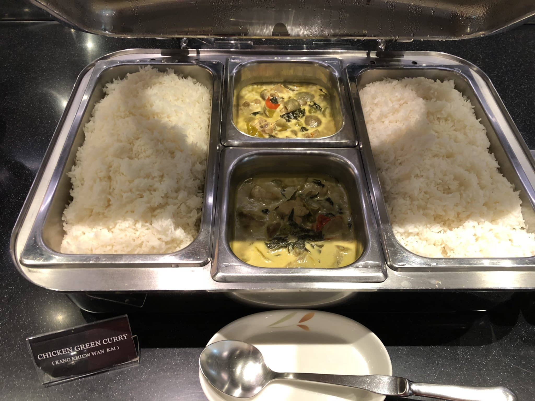 Die Auswahl an Essen war wirklich klasse. Hier wurde jeder Wunsch erfüllt. Wir waren gegen 9:30 Uhr in der Lounge und da gab es zwar kein echtes Frühstück mehr, aber alles andere, wie z.B. Pizza, Nudelsuppe, Kuchen, Früchte, warme Speisen, Magnum Eis, Sandwiches, Salat, Dim Sum, und noch einiges mehr. Es waren auch immer zwei Personen damit beschäftigt die große Auswahl an Essen wieder herzurichten, oder nachzuliefern. Die Lounge macht auch einen sauberen Eindruck. Es hatte den Anschein, sobald etwas auf dem Tisch stand, sei es ein leeres Glas, oder ein leerer Teller, war sofort jemand da, der diesen weggeräumt hat. Wie man es nicht anders aus Thailand kennt, schmeckte das Essen sehr gut. Hier ein paar Eindrücke von Essen und Getränken: