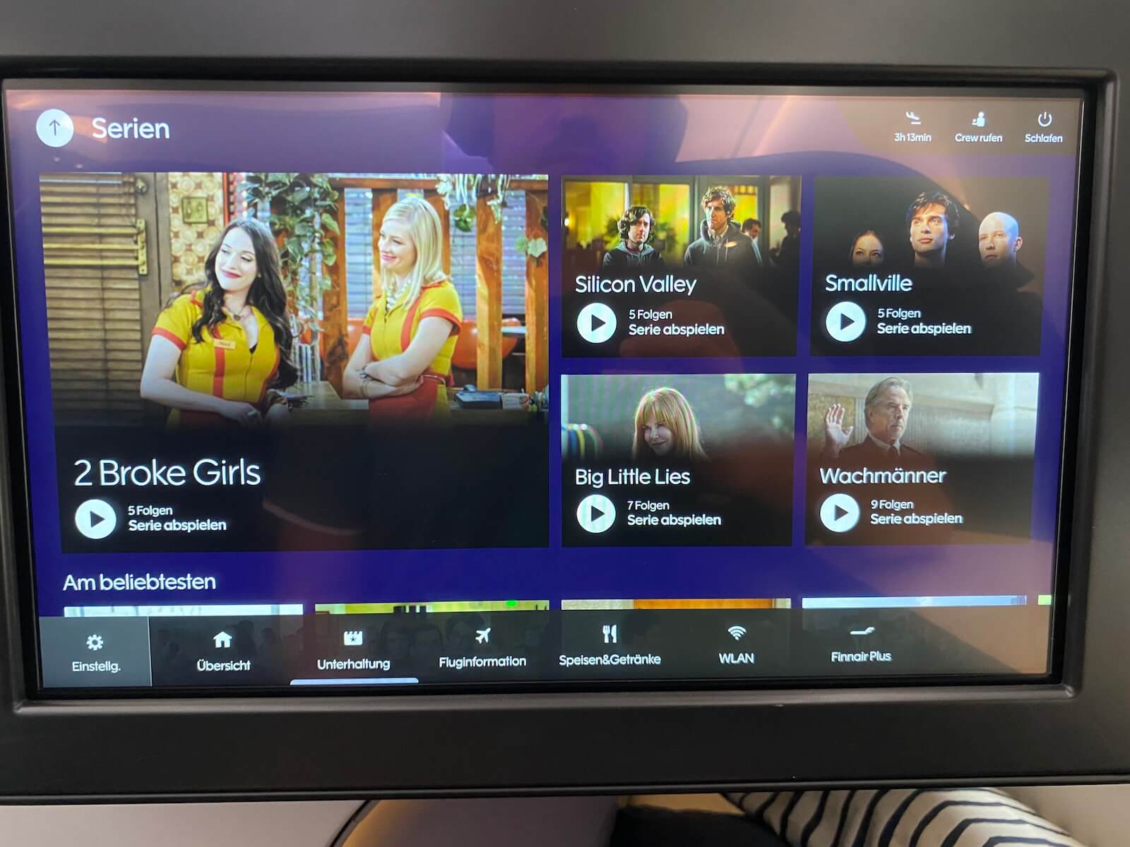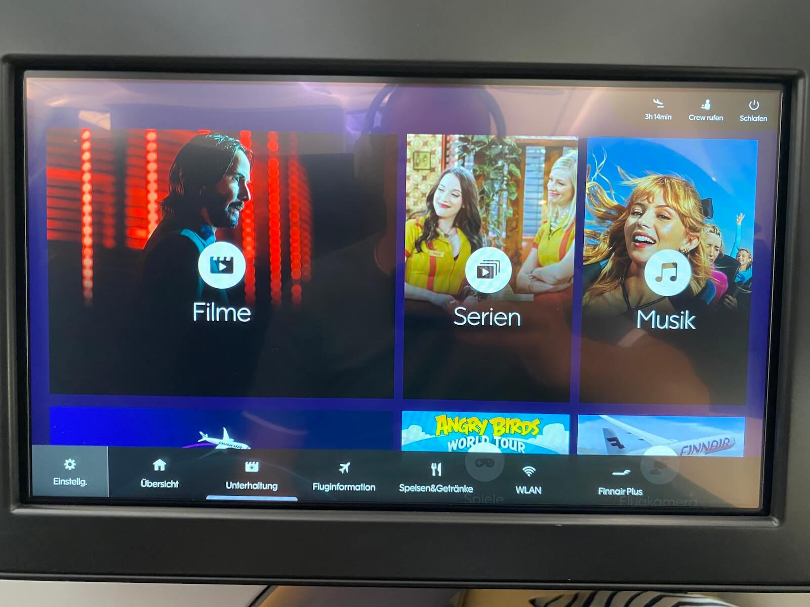 Der Monitor in der neuen Finnair Business Class bietet ein kontrastreiches Bild und hat mit 18 Zoll eine relativ gute Größe. Das Entertainment-Programm bietet die klassischen Inhalte wie Filme, Serien, Musik und Routeninformationen. Es gab einige Filme mit deutscher Tonspur und bei den Serien gab es zwischen 5 Folgen bis zu einer ganzen Staffel. Mehr zum Entertainment Programm bei Finnair findet ihr auf der Homepage von Finnair.