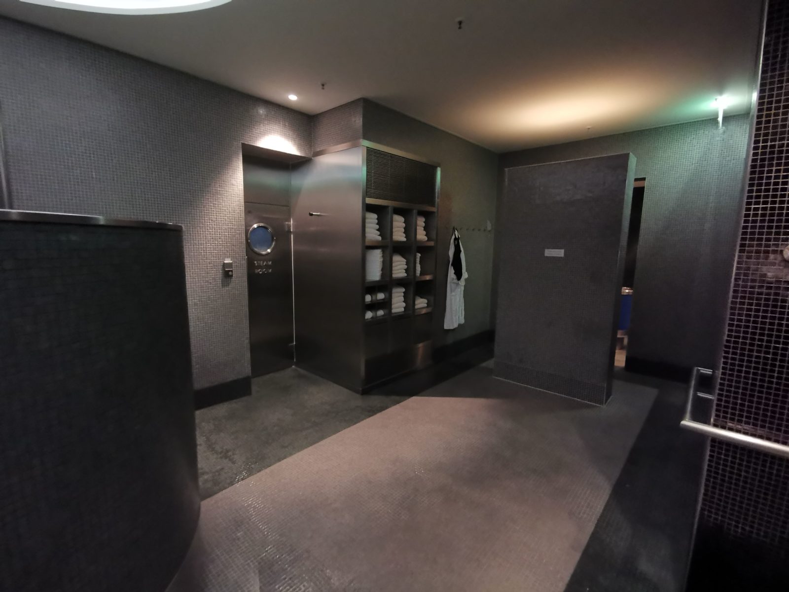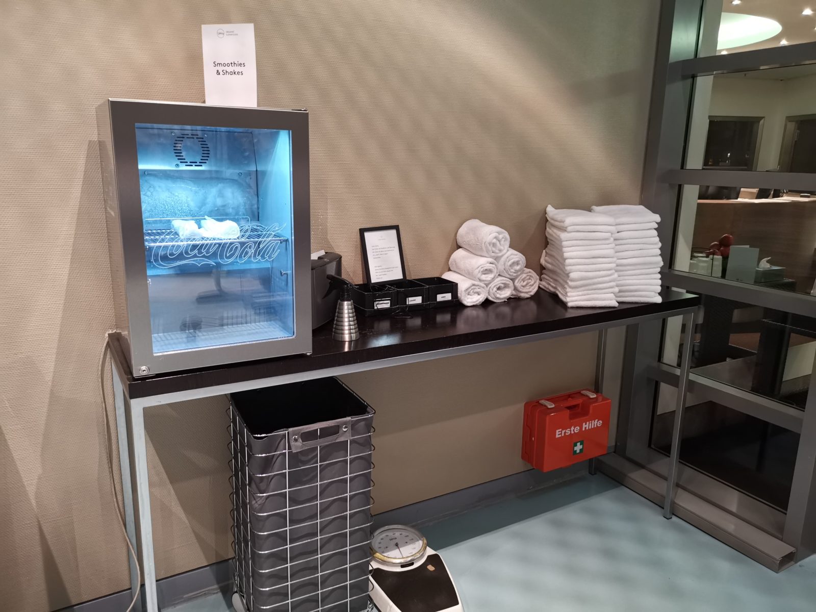 Direkt nach der Ankunft wurden wir freundlich empfangen und nach der Anzahl an benötigten Handtüchern gefragt. Nachdem die Zimmerkarten der Gäste eingelesen wurden, wurden uns die 800 qm großen Örtlichkeiten erklärt. Der gesamte Bereich ist von 06:00 – 23:00 Uhr geöffnet. Den Fitnessraum empfanden wir als sehr gut ausgestattet und sauber mit toller Aussicht dank bodentiefer Fenster rundherum. Auch der Ausblick von der dahinter liegenden Terrasse bot einen netten Blick auf die Dächer der Stadt. Des Weiteren wurden Shakes, Wasser und zahlreiche Handtücher bereitgestellt. Da wir sehr spät am Abend dort waren, wurde die Getränkebar vermutlich nicht noch einmal aufgefüllt.