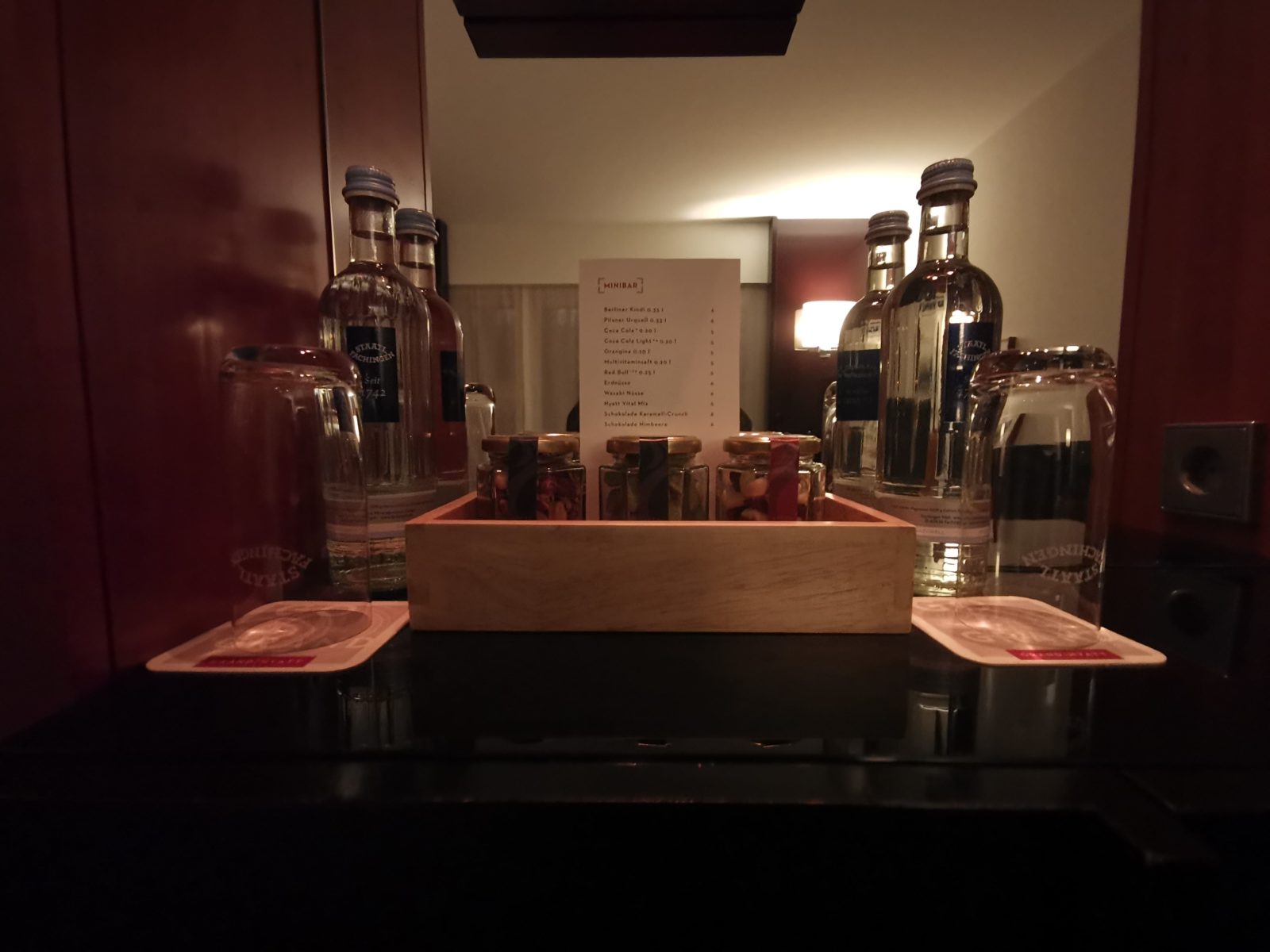 Ärgerlicherweise haben wir erst im Nachhinein erfahren, dass die gesamte Minibar kostenlos war. Wir haben nur vergebens nach Preisen gesucht, diese nicht gefunden und daher nichts davon angerührt. Weiter gab es einen Wasserkocher, eine Kaffeemaschine, Bügeleisen und -brett, Haartrockner und einen Safe.