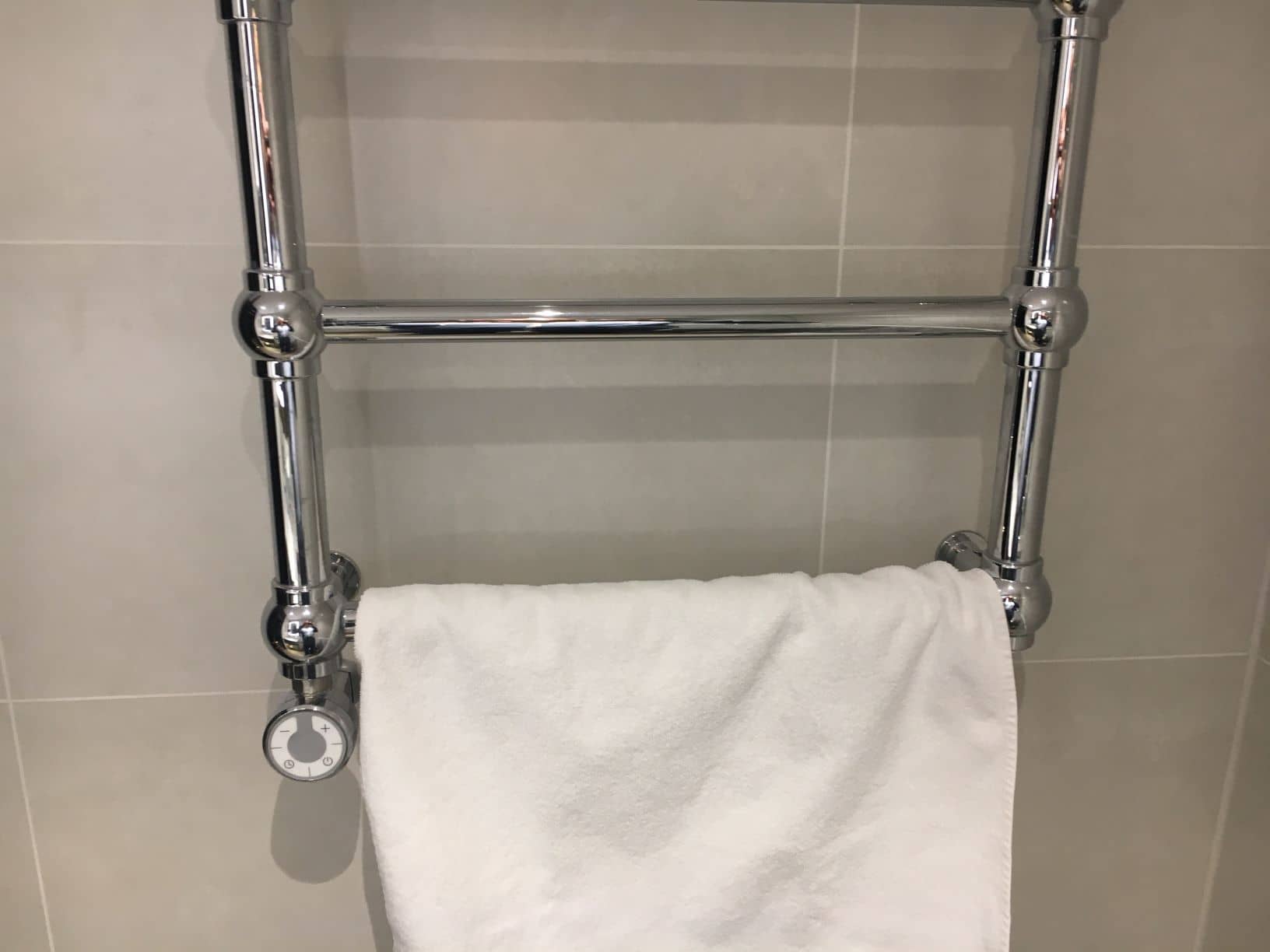 Was dem Executive Zimmer an Größe gefehlt hat machte die Suite mehr als wieder wett. Die Suite liegt im 4. Stock und befindet sich so ziemlich am Ende des Ganges. Sie ist zweistöckig und aufgeteilt auf vier Räume: Das Esszimmer und die Küche und das Wohnzimmer im Erdgeschoss, sowie die beiden Schlafzimmer und das gemeinsame Badezimmer im oberen Stockwerk. Das Gästebad befindet sich auch hier direkt rechts im Eingangsbereich und verfügt sogar über einen Handtuchwärmer.