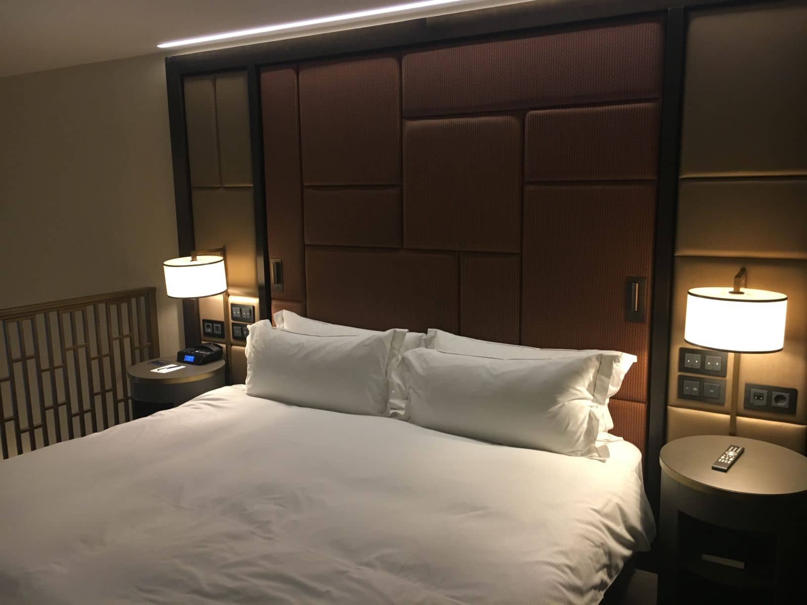 Geht man die Treppe hoch befindet man sich auf einer Art Galerie. Wie auch schon beim Executive Room finde ich die Gestaltung sehr angenehm: Modern aber nicht kühl. Dass die Fenster oberhalb der Kopfhöhe sind, ist der einzige Schwachpunkt und vermutlich der Bauweise geschuldet, somit kommt etwas wenig Tageslicht rein und aus dem Fenster kann man eigentlich nicht schauen. Schaltet man sämtliche Lampen in der Suite an ist es allerdings gut ausgeleuchtet und nach wie vor gemütlich.