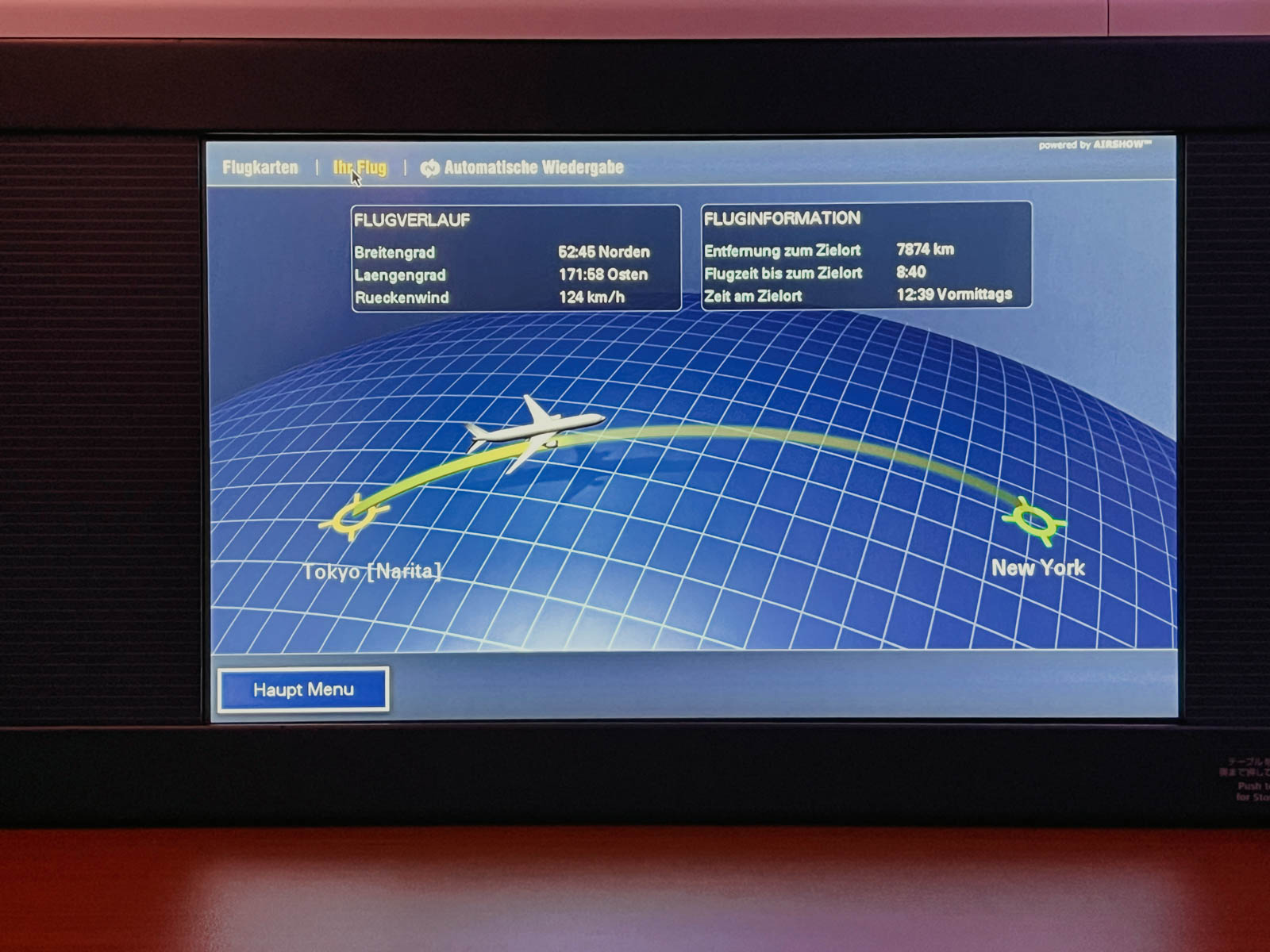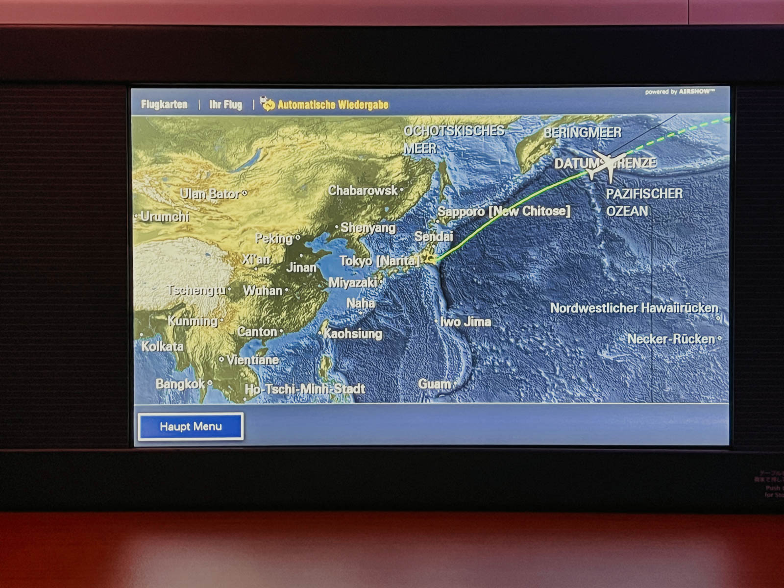 Die Airshow ist relativ standardmäßig und lässt sich sowohl auf dem kleinen IFE Controller als auch auf dem größeren Monitor darstellen. Ein paar Einstellungen waren zwar möglich, allerdings nicht so zahlreich wie bei einigen neueren Systemen. Alles in allem aber vollkommen in Ordnung.