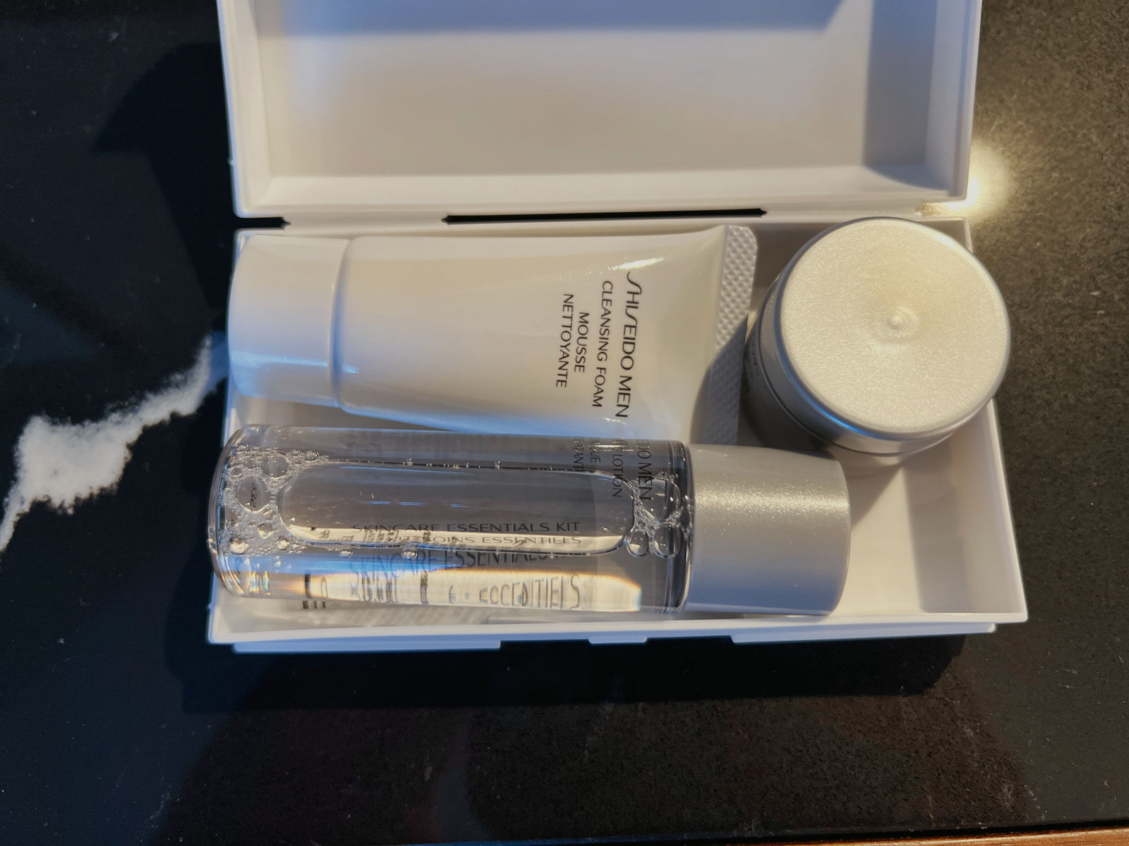 Das Amenity Kit von Shiseido enthält eine Feuchtigkeitslotion, einen Reinigungsschaum sowie eine Revitalizing Creme, allesamt in praktischen Behältnissen von maximal 30ml.