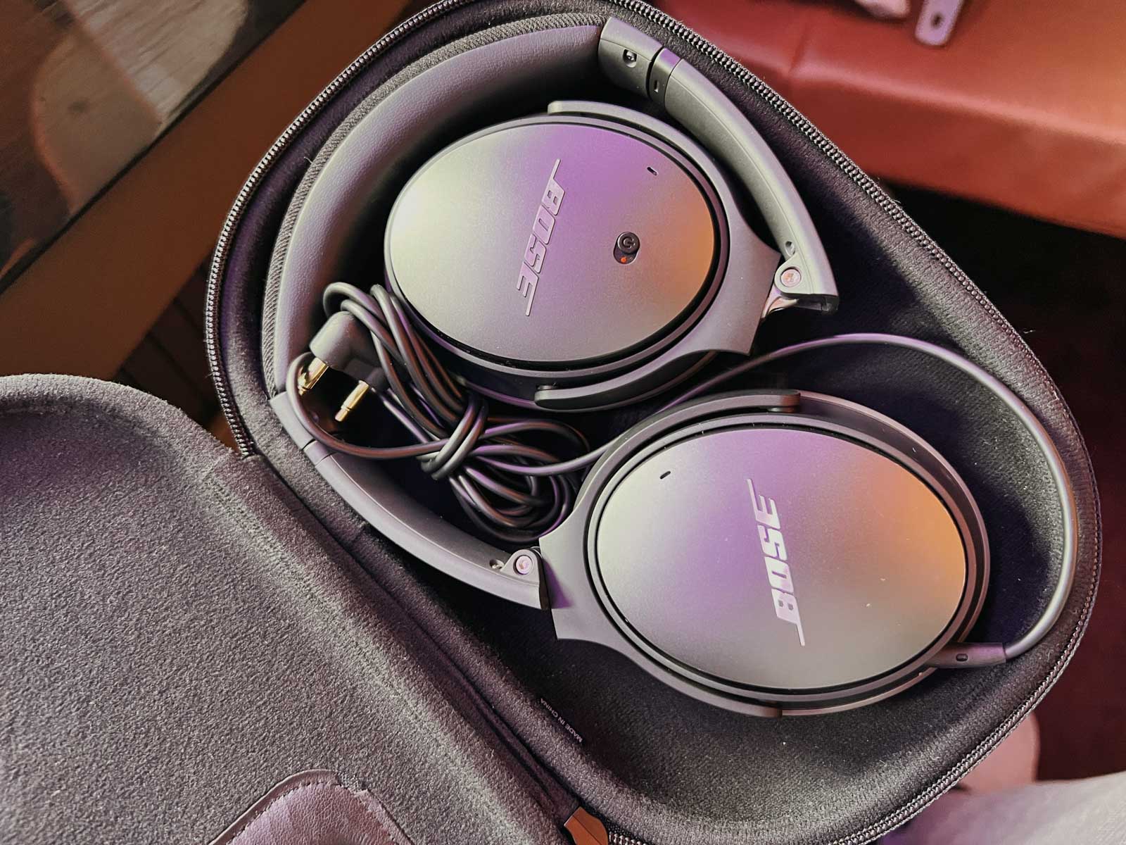 Bereits beim Boarding warten hochwertige Bose Noise Cancelling Kopfhörer (ich glaube QC45?) am Sitzplatz, welche für den gesamten Flug zur Verfügung stehen. Hier ist man der Konkurrenz eindeutig voraus; ich bin zwar weit entfernt von audiophil, aber was dort teilweise für Kopfhörer in der First Class angeboten werden ist nicht der Rede wert. Swiss darf sich hierbei ruhig angesprochen fühlen, so sehr ich die Airline ansonsten schätze.