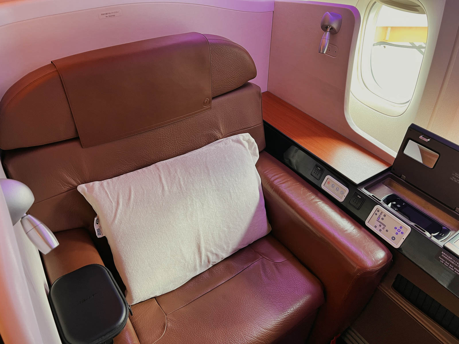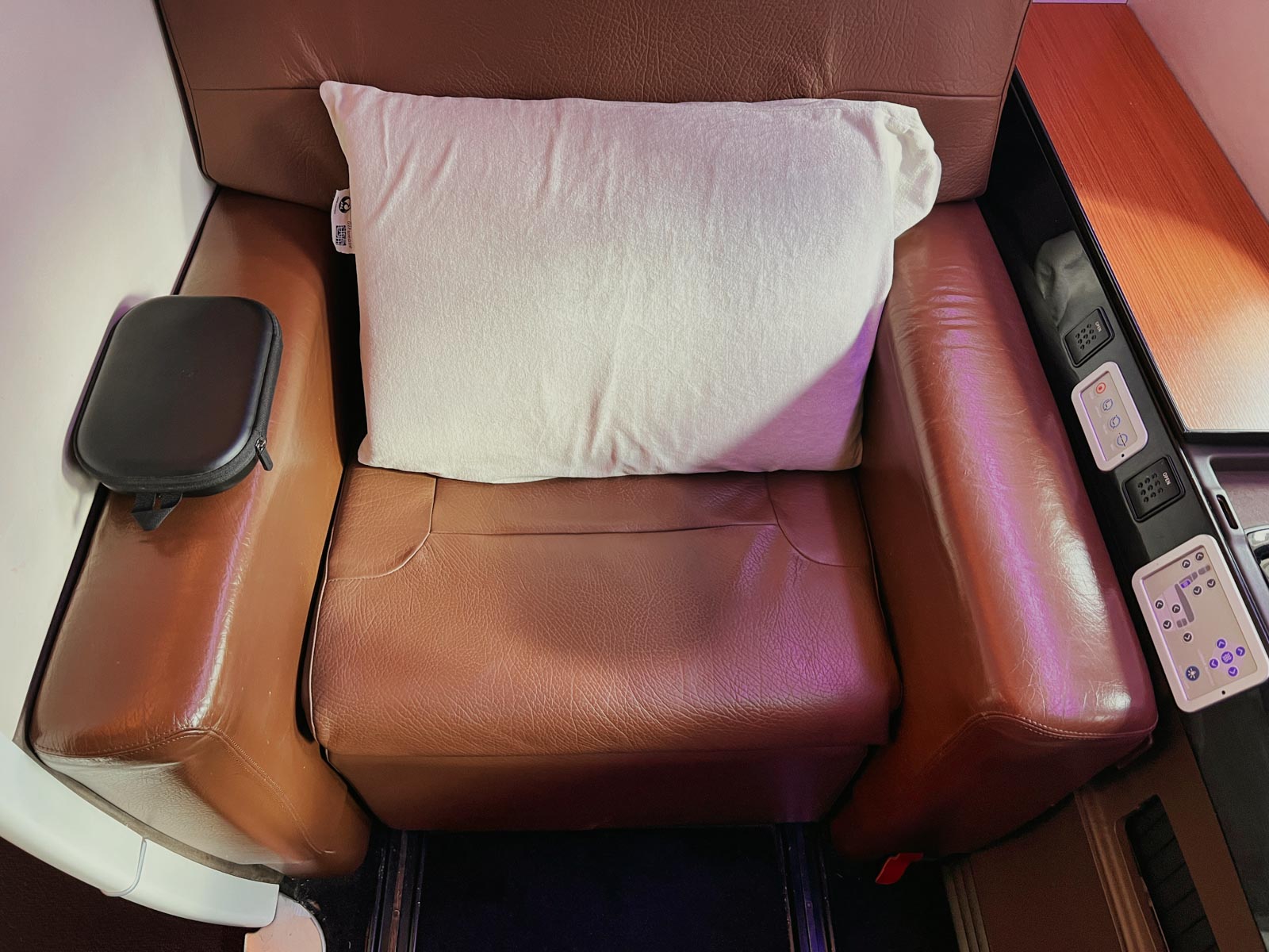 Insgesamt bin ich von dem Sitz durchaus angetan. Abgesehen vom nicht mehr ganz frischen Design und der leicht eingeschränkten Sicht nach draußen sind die Staufächer, Bedienelemente, sowie die Beleuchtung gut angeordnet, und das Hauptmerkmal für einen Sitz bzw. ein Bett ist auch erfüllt – die Bequemlichkeit. Selbst nach 13 Stunden Sitzen/Liegen war dieser noch bequem.
