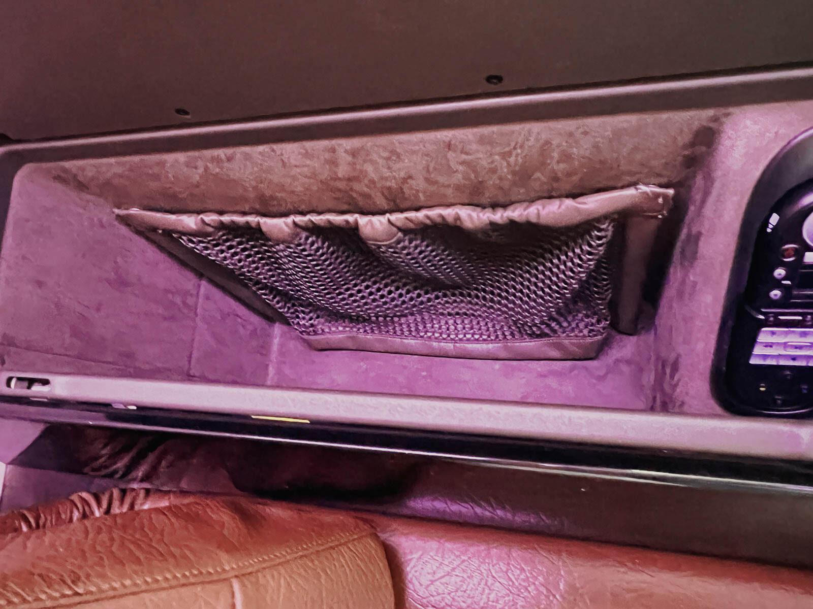 Links daneben befindet sich das große Staufach, welches zunächst über einen Knopf entriegelt werden muss. Hier befindet sich eine weitere Fernbedienung, allerdings wird diese nicht benötigt, ich wüsste jedenfalls nicht wozu. Zusätzlich gibt es ein Netz für kleinere Gegenstände, wie zum Beispiel ein iPad oder einen eReader, im Hauptbereich dürfte auch ein Laptop Platz haben.