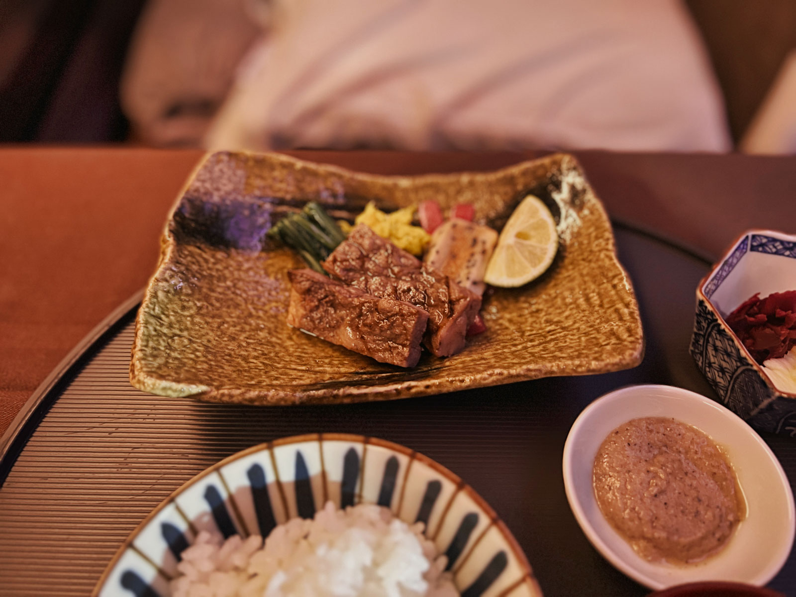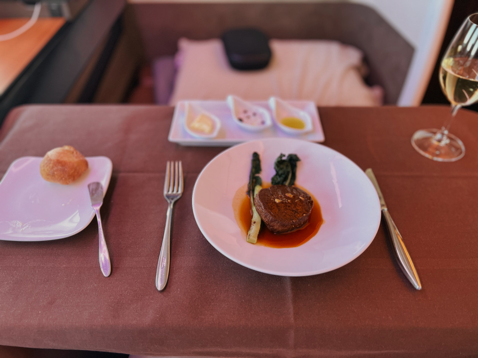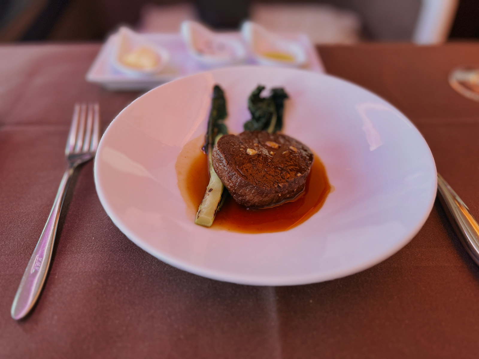 Anstatt eines traditionellen Frühstücks habe ich mich einige Stunden vor der Landung für ein Sliced Wagyu Beef Sirloin Steak mit Trüffel Soße und Reis entschieden. Die perfekte Mahlzeit für den kleinen Hunger zwischendurch.
