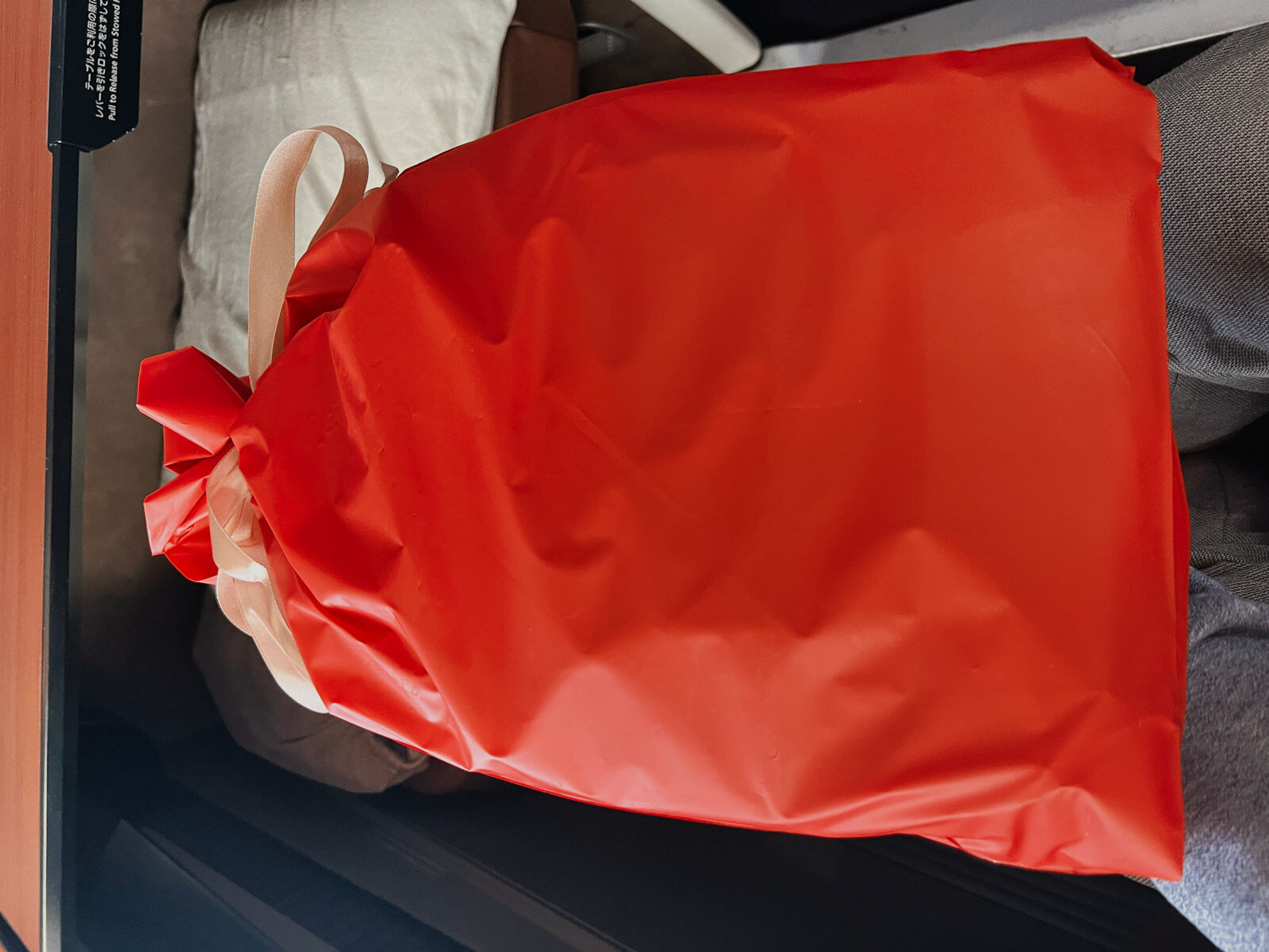 Anders beim Pyjama. Dieser wurde nach dem Boarding und dem Abfragen der Größe gereicht – farblich nicht unbedingt dem aktuellen Modetrend entsprechend, aber äußerst bequem und luftig. Mit dem Wissen, dass es meist nur einen Pyjama pro Passagier gibt habe ich die Flugbegleiterin gefragt, ob ich denn noch einen weiteren Schlafanzug für meinen Bruder haben könnte. Sie meinte, dass es normalerweise nur einen pro Person gibt, aber dass sie gerne schauen gehe, ob es möglich sei; welche Größe denn mein Bruder hätte. Als ich ihr gesagt habe, dass das einfach sei, da er mein Zwillingsbruder sei und er ebenfalls M trage, hatte sie eine Riesenfreude und verschwand in der Galley. Kurz darauf tauchte sie mit einem in einer Geschenktüte verpackten Pyjama auf und meinte ich solle meinen Bruder ganz lieb grüßen. Die Grüße konnte ich dank WiFi im Flugzeug direkt ausrichten und direkt an sie mit Dank für den Pyjama erwidern – ihr hättet ihr Gesicht sehen sollen, selbst durch die Maske hindurch hat sie sich wahnsinnig darüber gefreut. Ein für mich repräsentatives Erlebnis meiner Erfahrungen mit den Japanern und auch für JAL.