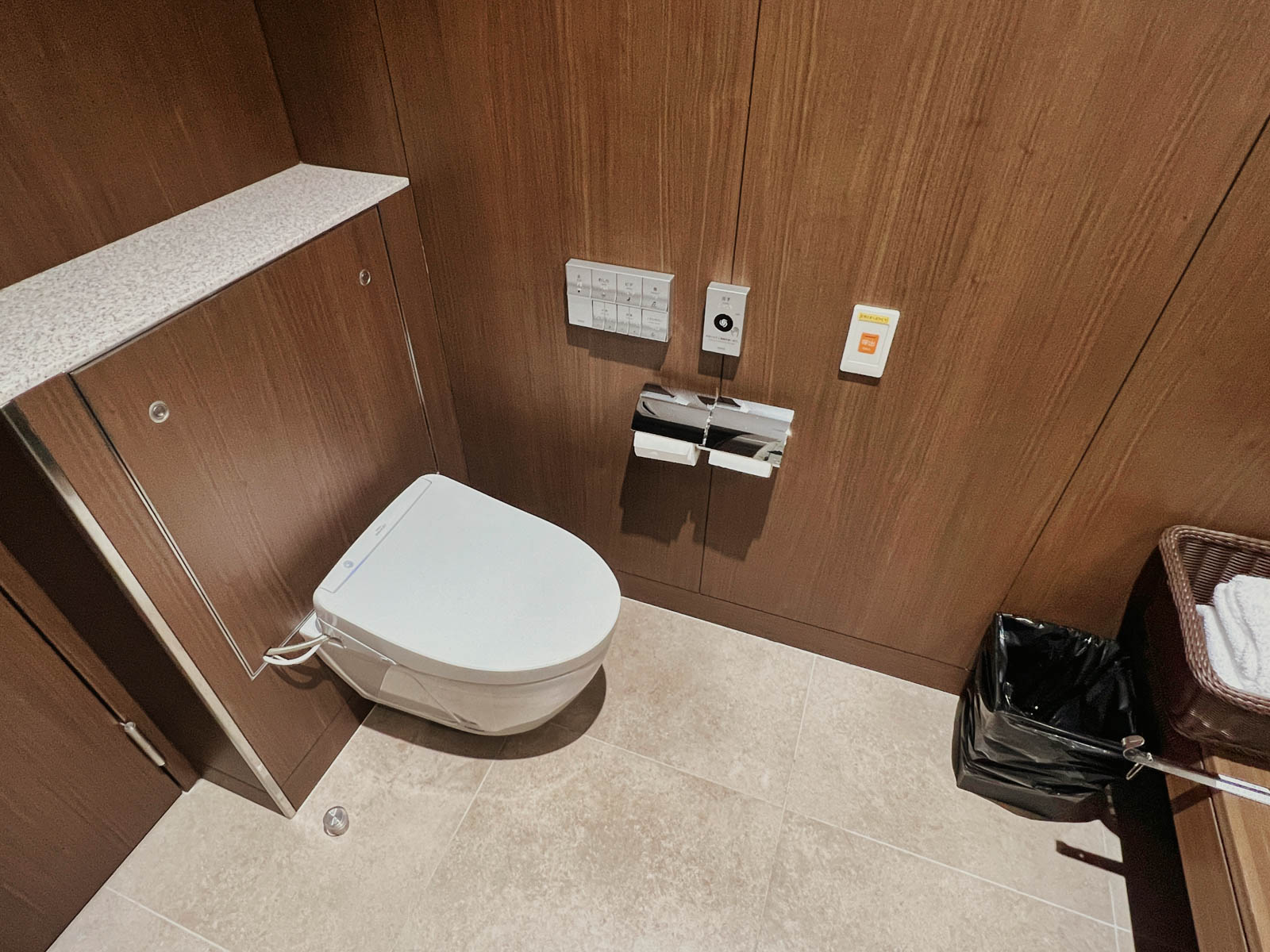 Im Hauptbereich der Lounge, also im 4. Stock bei den Restaurants, gibt es japanische WCs.