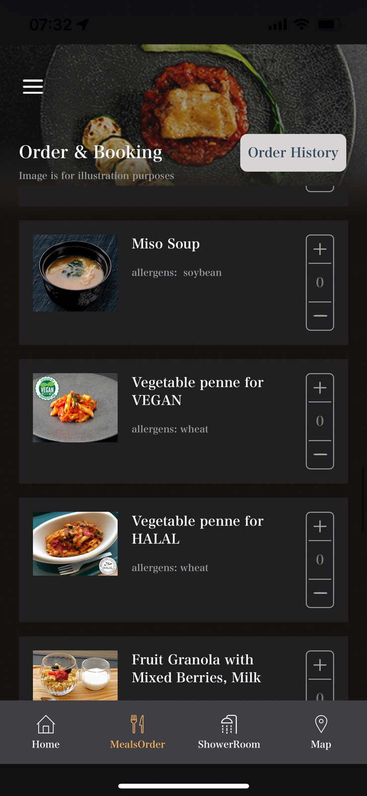Punkten konnte die Lounge definitiv beim Essen. Man scannt einen QR Code, welcher an jedem Tisch angebracht ist, und gelangt dann zum JAL Lounge+ Menu. Hier kann man sehen wie voll die Lounge ist oder auch das Essen bzw. die Dusche reservieren, was ich natürlich zum Frühstück getestet habe. Durch die frühe Uhrzeit und mit dem Wissen, dass ich auf meinem Flug nach New York noch genügend zu Essen bekommen würde, habe ich nur ein Früchtemüsli, ein Croissant sowie etwas Rührei mit Wurst und Kartoffeln bestellt. Das Essen war nicht nur optisch ansprechend, sondern hat auch gut geschmeckt. Die Portionen fallen eher klein aus, was es aber einfacher macht, sich einmal quer durch die Karte zu probieren ;)