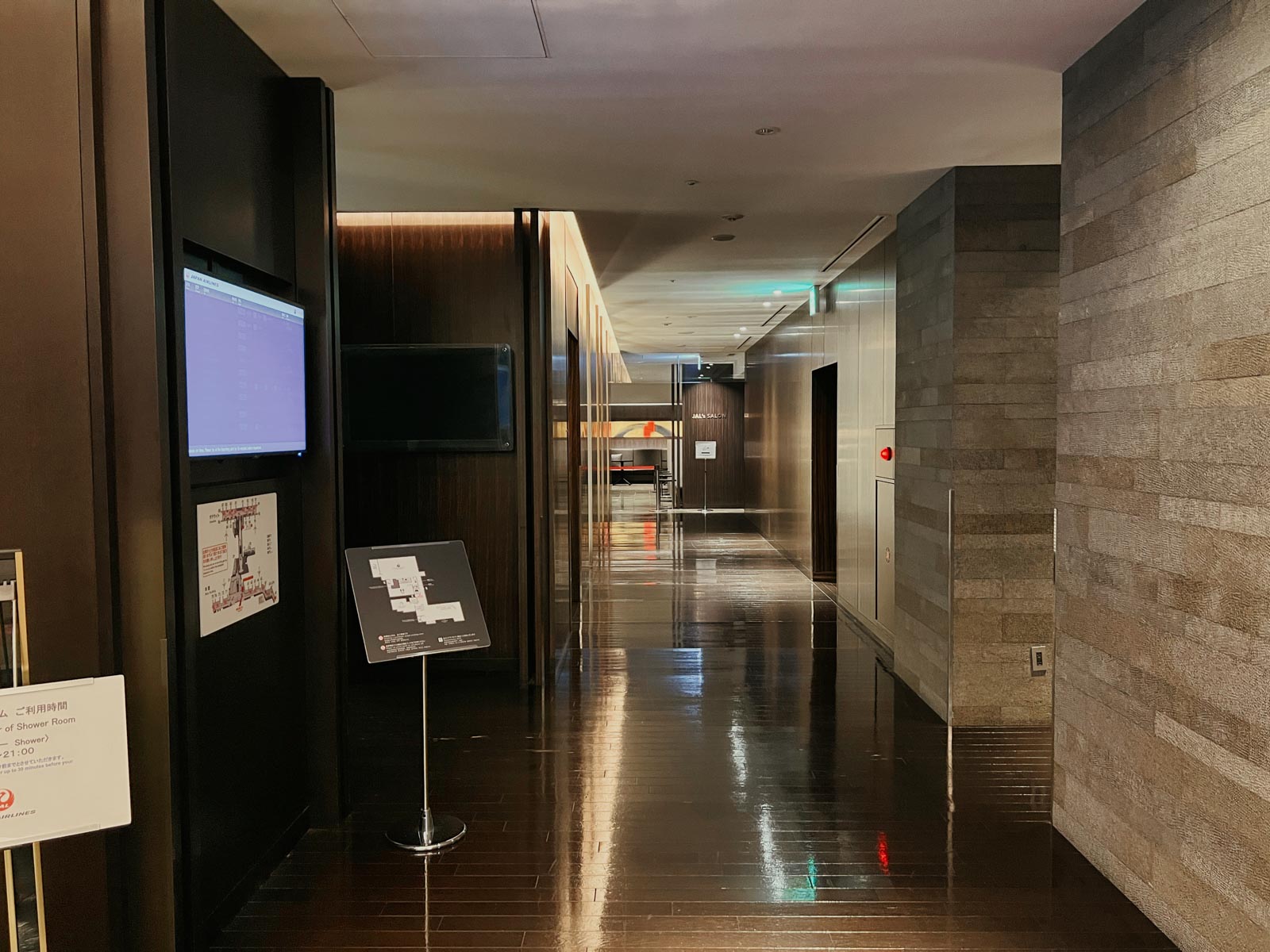 Nach der Kontrolle sind es nur noch ein paar Meter zum Eingang der Lounge, welche sowohl auf Ebene 3 als auch Ebene 4 betreten werden kann. Rechts geht es dabei zur Sakura Lounge, im linken Teil sind die Duschen der First Class Lounge untergebracht, alles andere liegt ein Stockwerk darüber und ist mit einem Aufzug erreichbar.