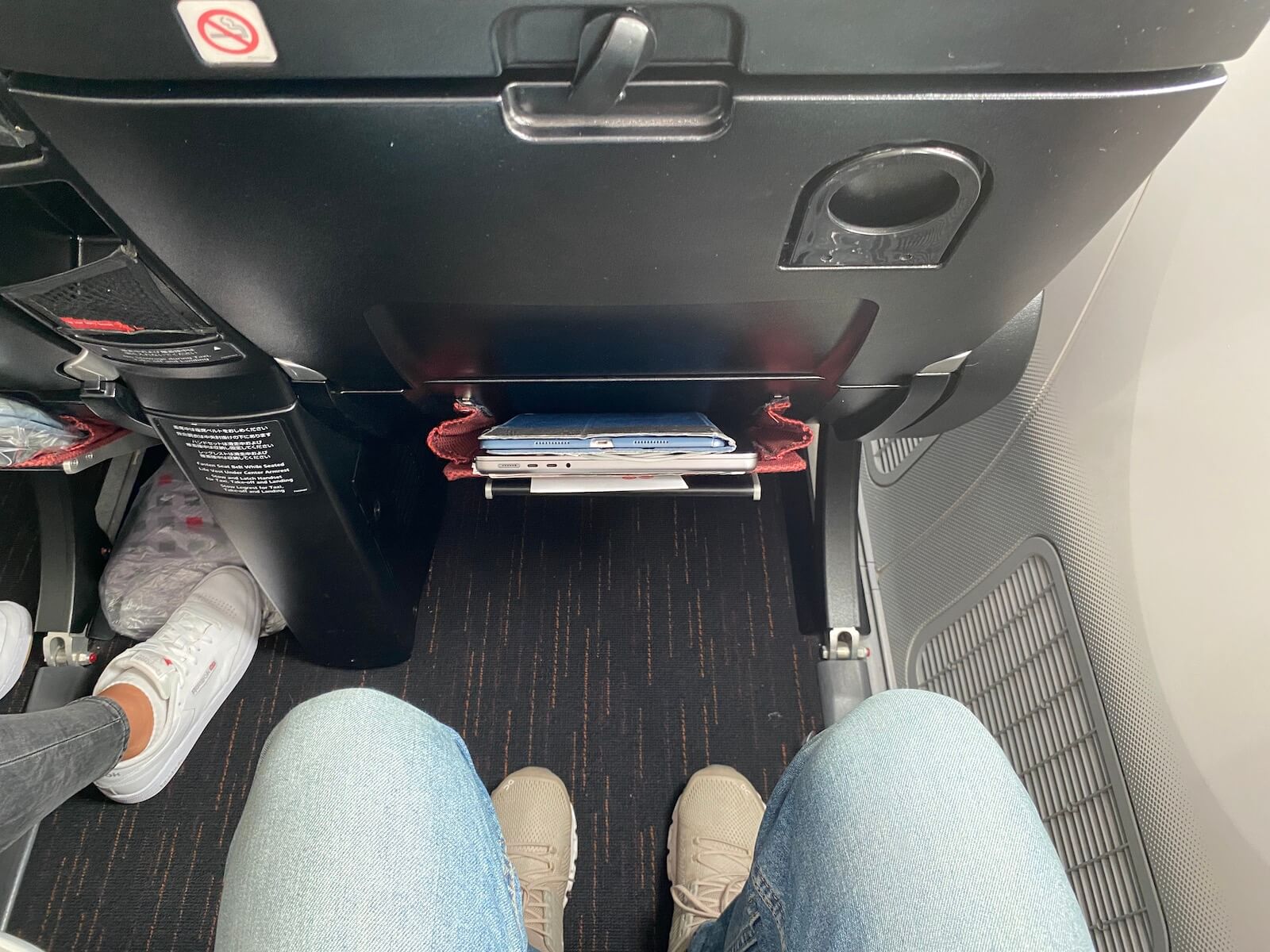 Die Polsterung des Sitzes selbst war etwas dünner als bei ANA, dennoch konnte ich den ganzen Flug über gut sitzen. In Recliner Position gefiel mir der Sitz besser als die Premium Economy Sitze bei ANA oder Lufthansa. Wie gesagt, das ist Geschmackssache, aber ich habe mich schnell mit dem Fixed Shell Sitz angefreundet. Das Einzige, was mir nicht so gut gefiel, war die Beinablage, die ich als störend wahrgenommen habe. Es liegt vielleicht an meiner Größe, aber ohne ließ es sich deutlich besser sitzen für mich.