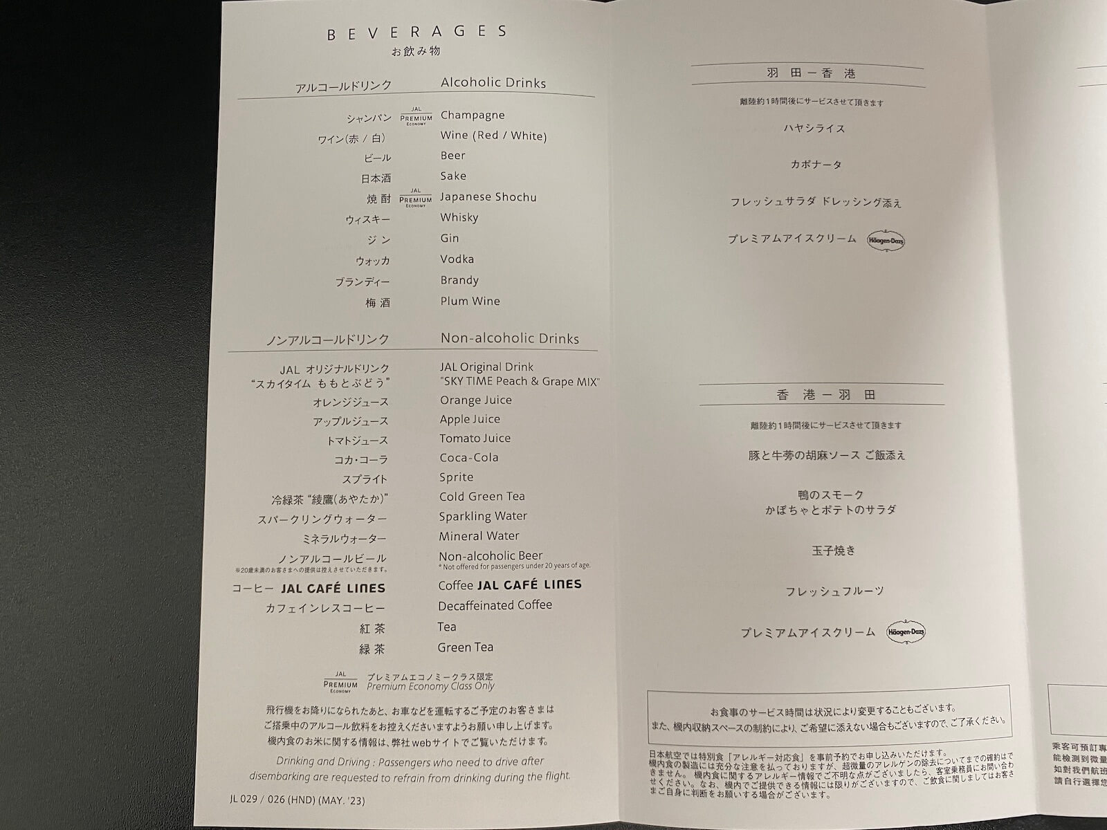 Japan Airlines Premium Economy Boeing 787-9 – Service und Essen